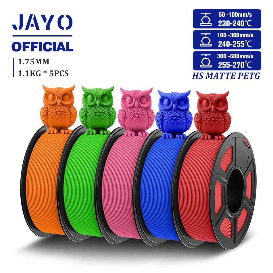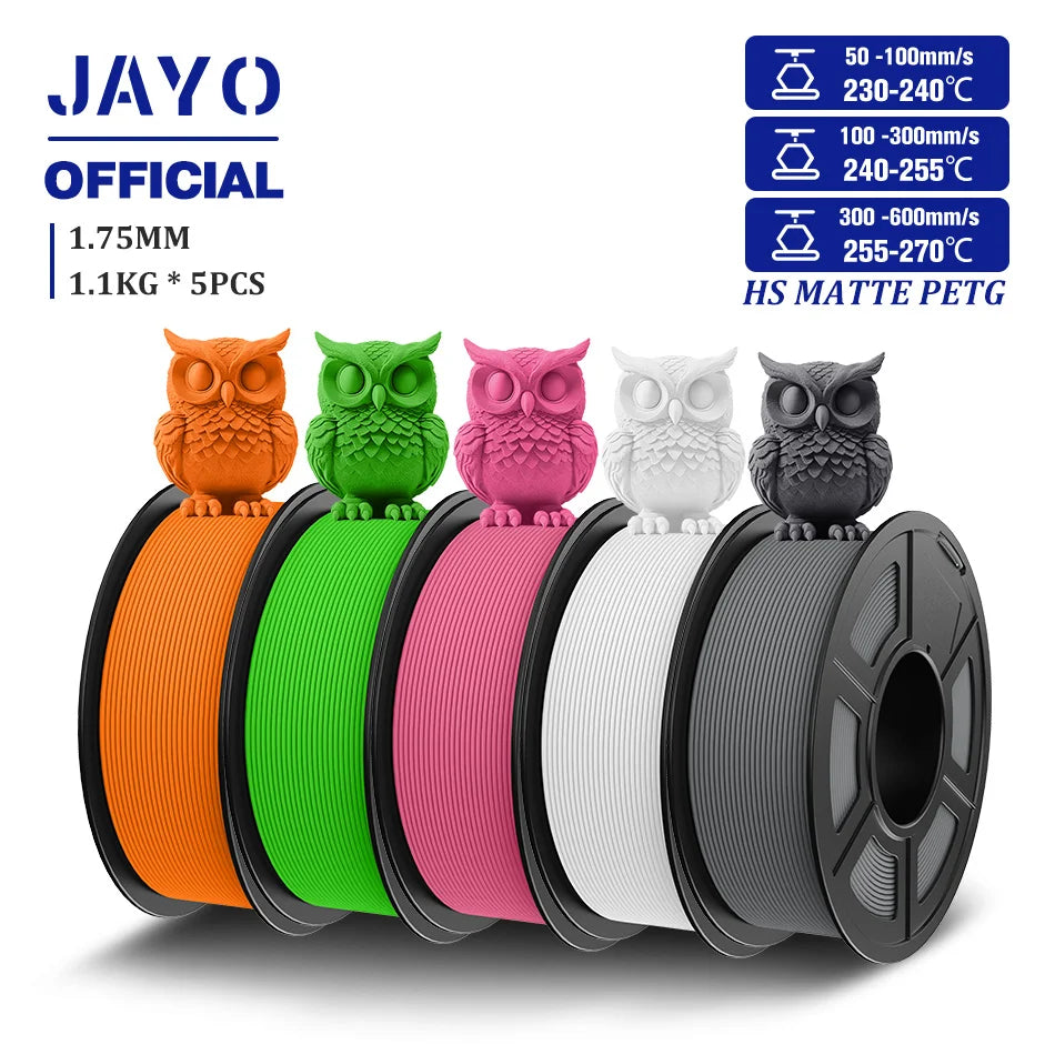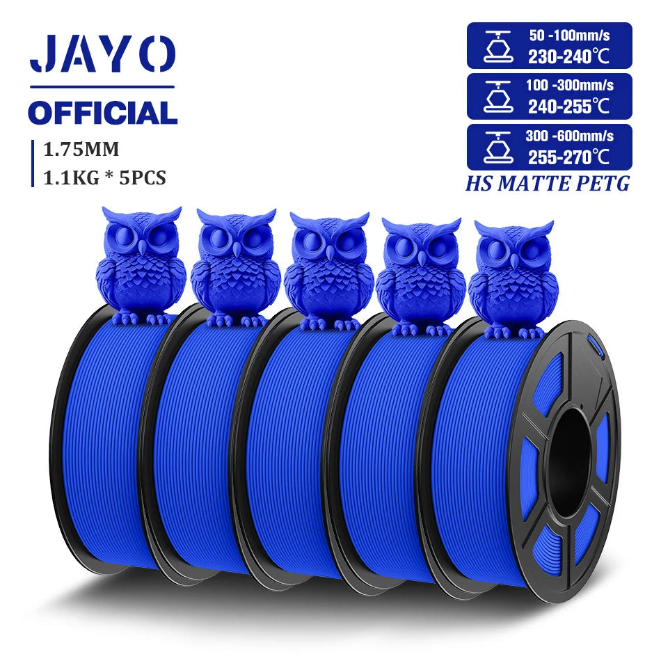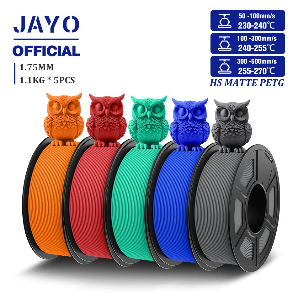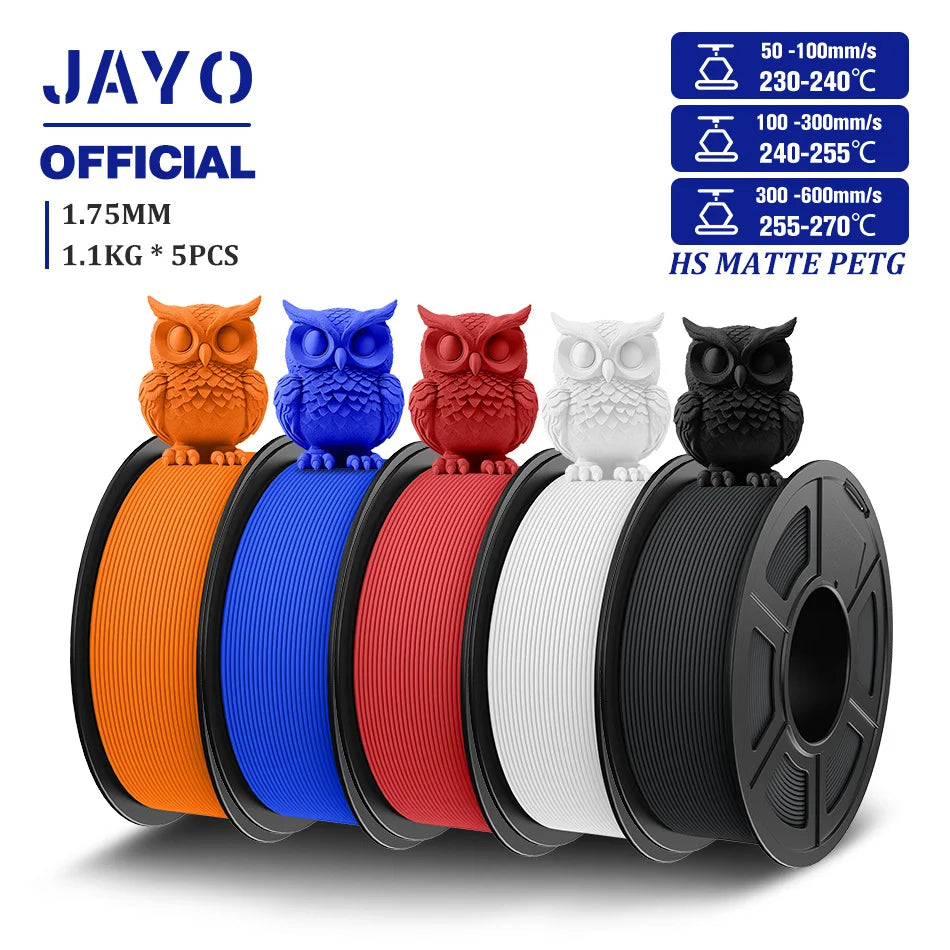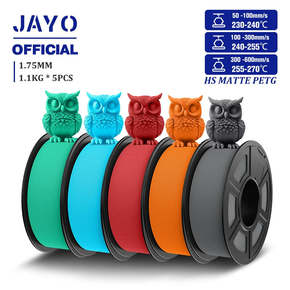 JAYO 5Rolls PETG Filament 1.75mm High Speed PETG 3D Printer Filament 1.1KG/Roll High Flow Speedy Matte 3D Printing Materials