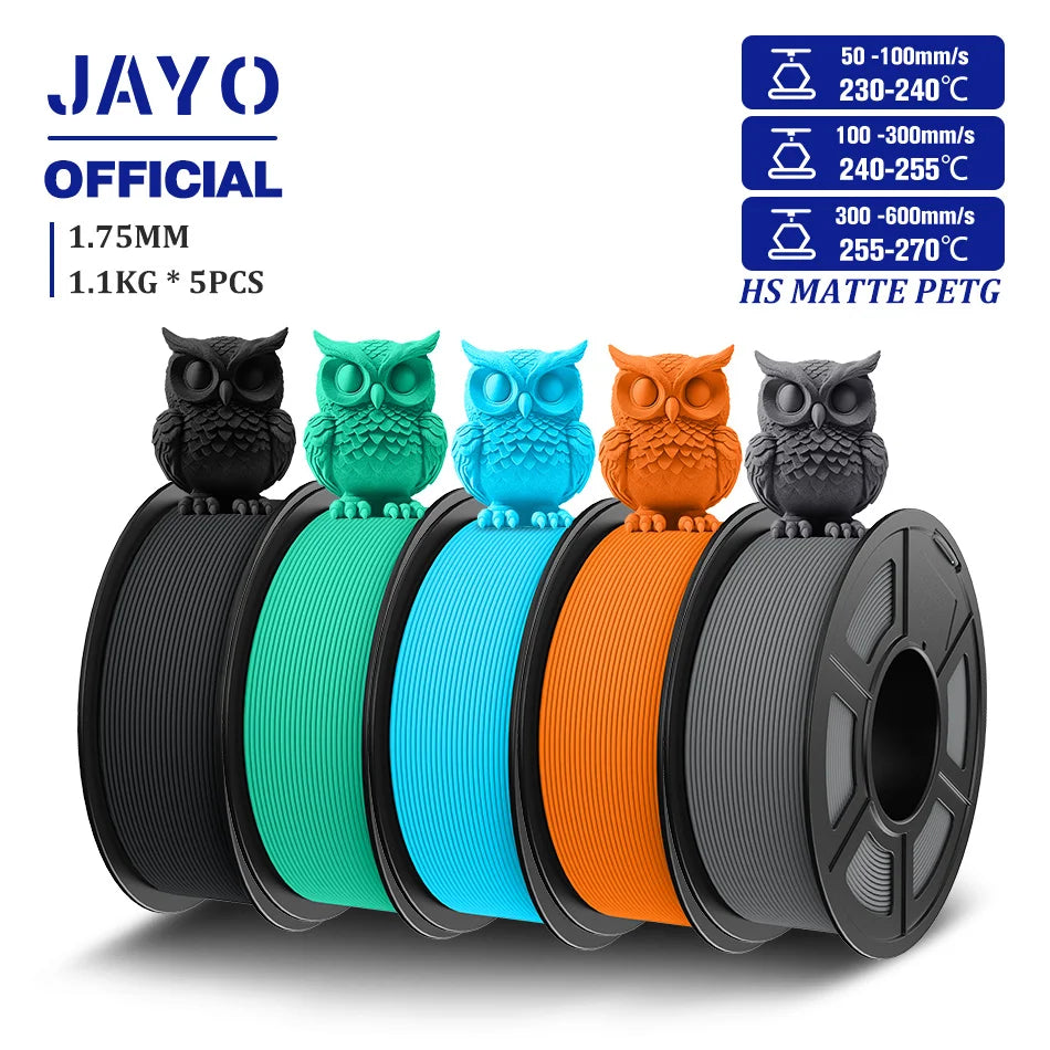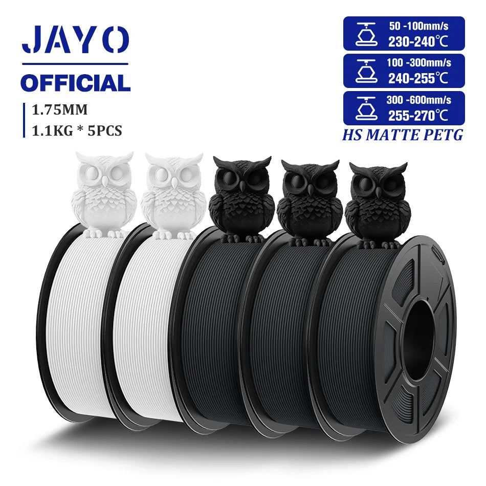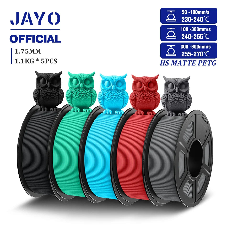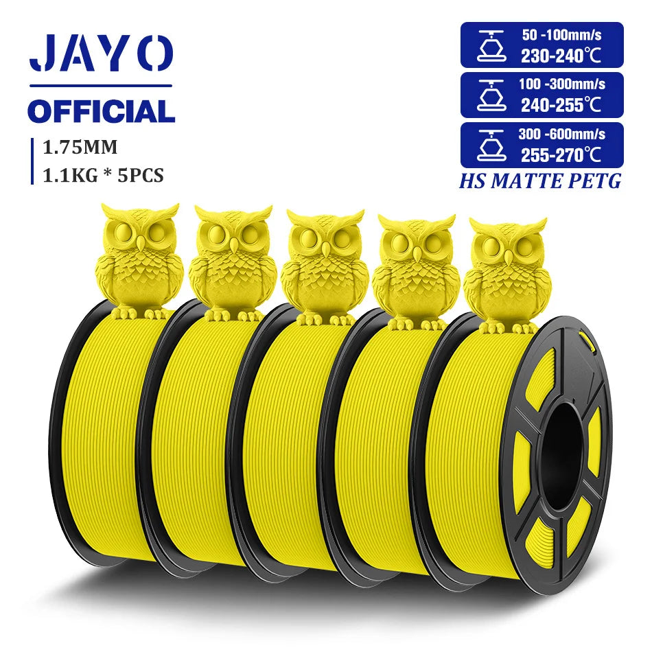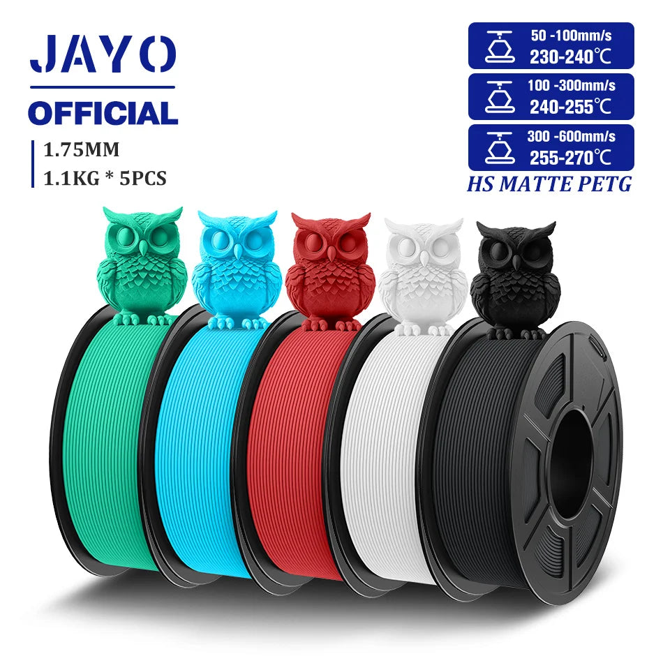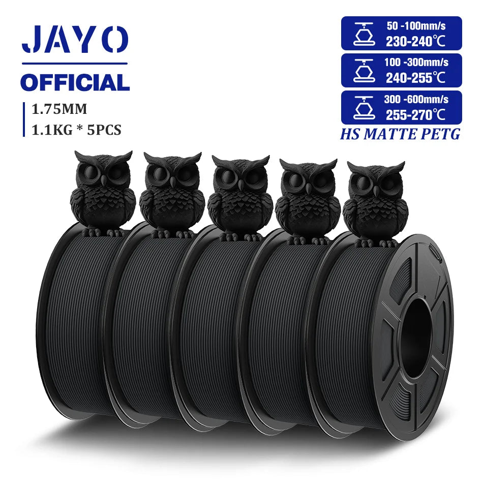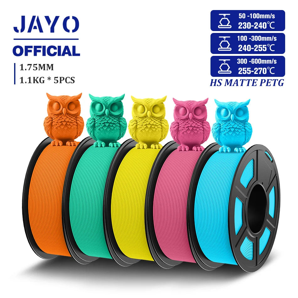 JAYO 5Rolls PETG Filament 1.75mm High Speed PETG 3D Printer Filament 1.1KG/Roll High Flow Speedy Matte 3D Printing Materials