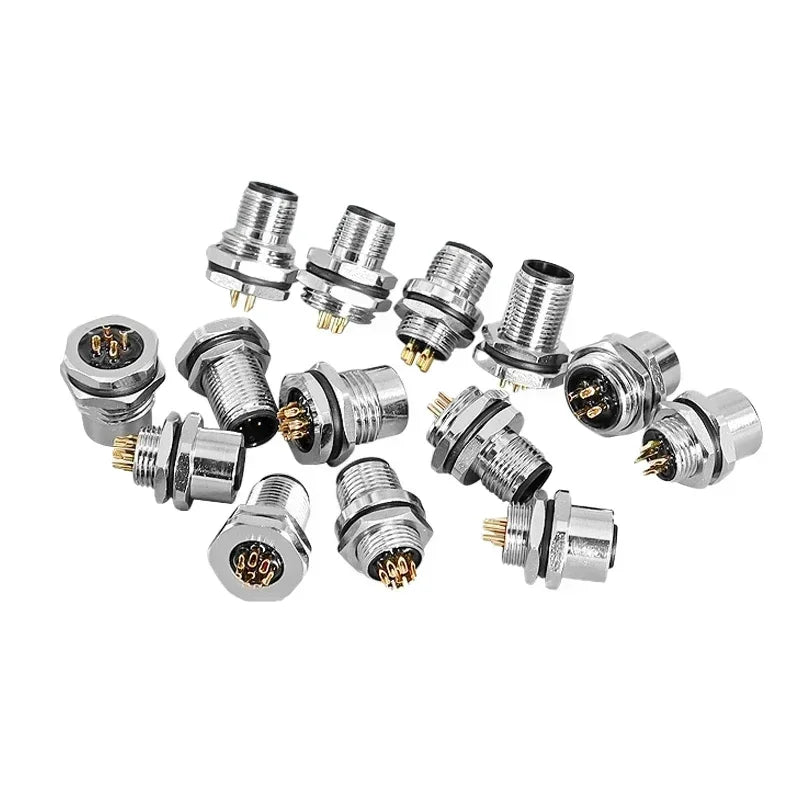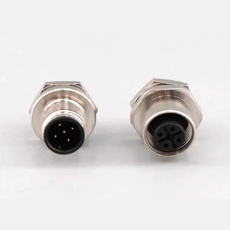 M12 flange mounting sensor connector front/rear panel waterproof male&female plug screw threaded coupling 4 5 8Pin connectors