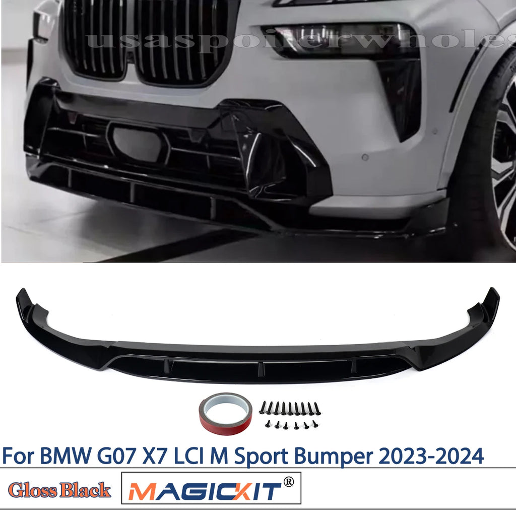 Magickit For BMW G07 X7 M Sport 2023+ Glossy Black Front Shovel Kit Bumper Guard Front Bumper Lip Splitter 2024 Splitter Kit
