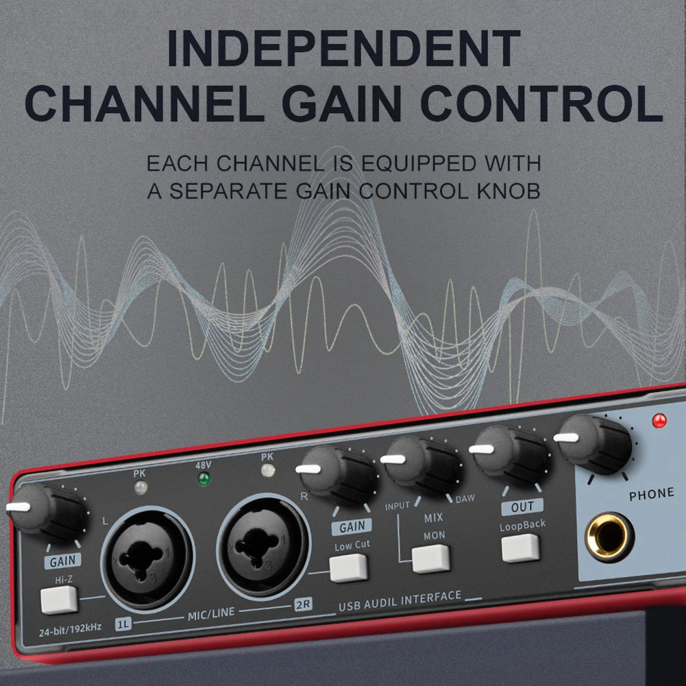 MD22 Recording Sound Card 48V Phantom Power USB Audio Interface 24-bit/192 KHZ for Audio Equipment Guitar