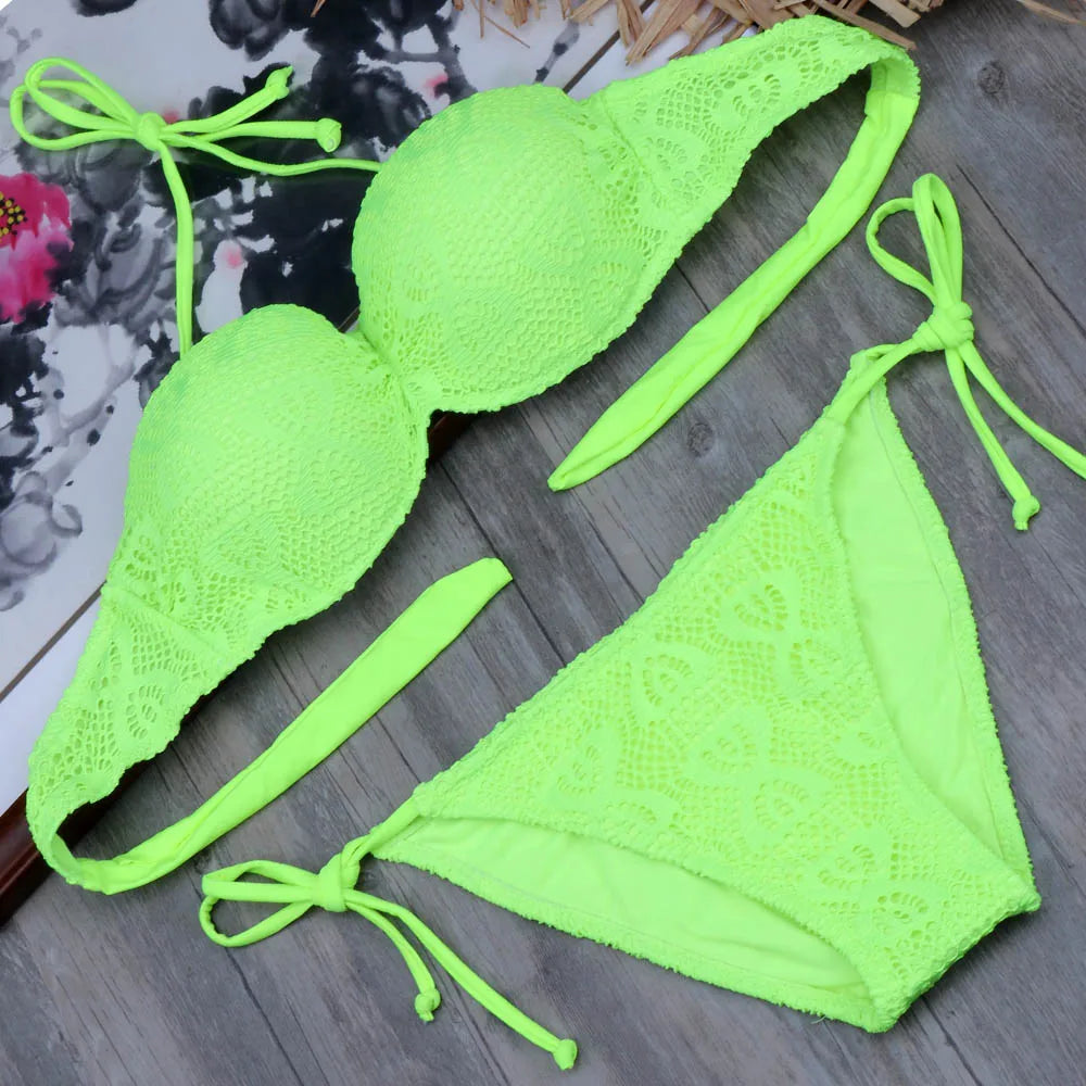 Melphieer 2024 White Mesh Bikini Sexy Monokini Swimwear Women's Underwired Bra Push Up Swimsuit Beach Bathing Suit Swimming Suit
