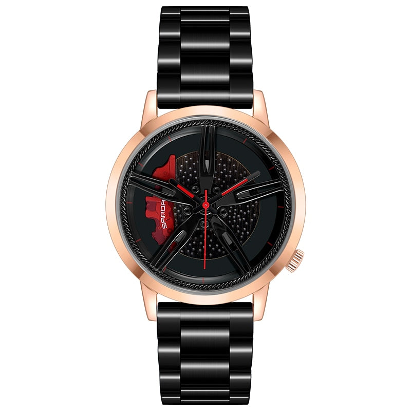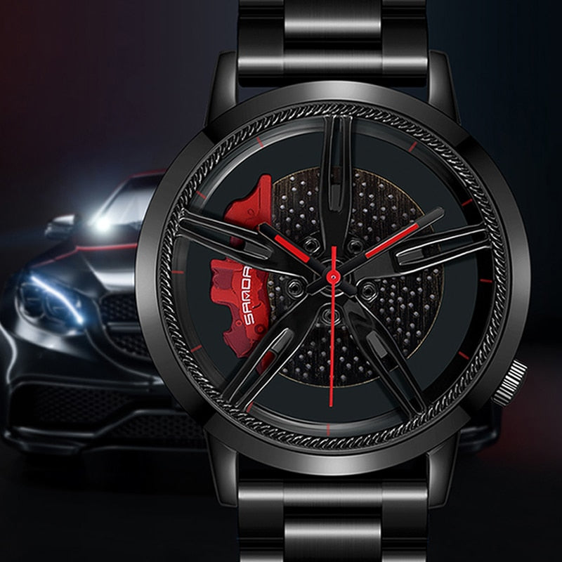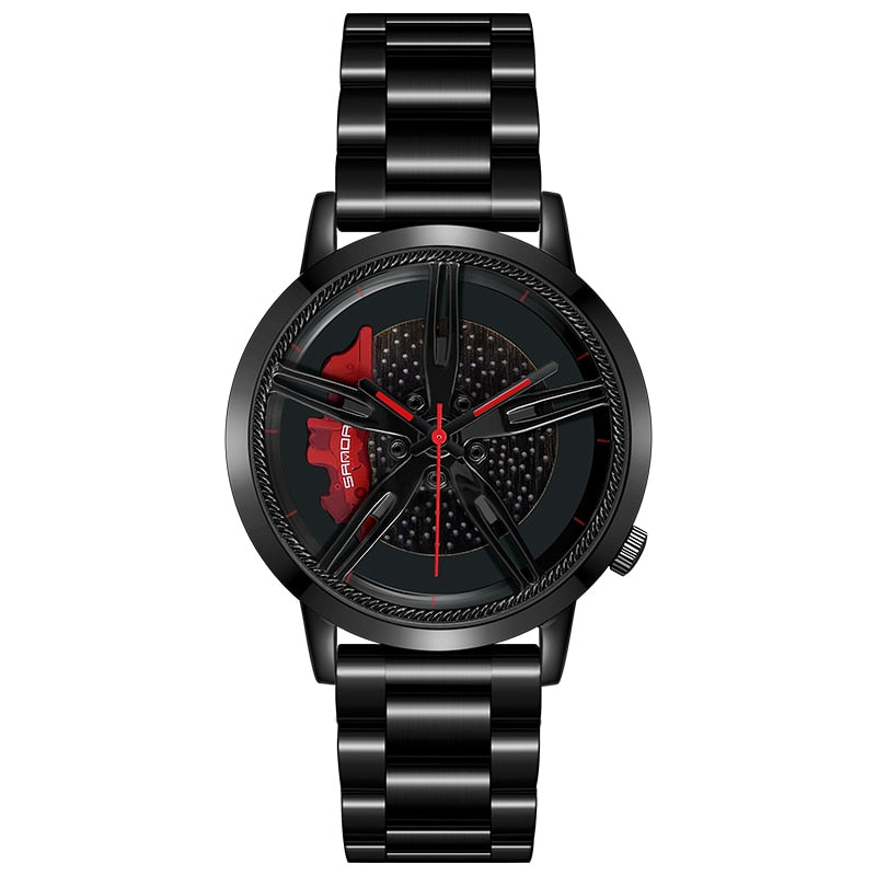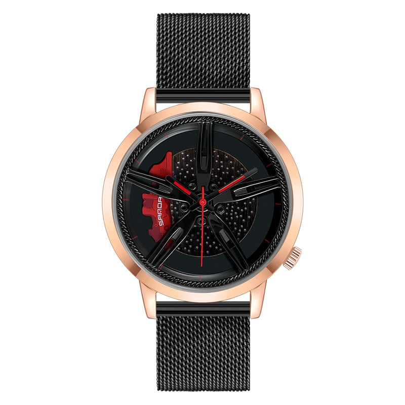 Men Watch Car Wheel Rim Hub Dial Male Wristwatch Cool Man Black Waterproof Watches Mesh Stainless Steel Quartz Relogio Masculino