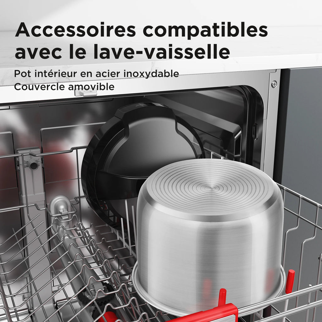 MULTIPLE 9 PRESSURE THOUGHER IN 1: Works as pressure cooker, rice cooker, steam cooker, yogurt pot, Sauté, Under Vacuum, food heater and pastry chef.