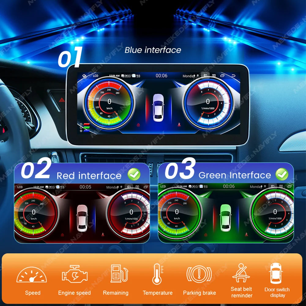 6、Support the original car information display, (fuel, battery, oil, tire pressure, temperature, speed, seat belt, open/close door) and other functions