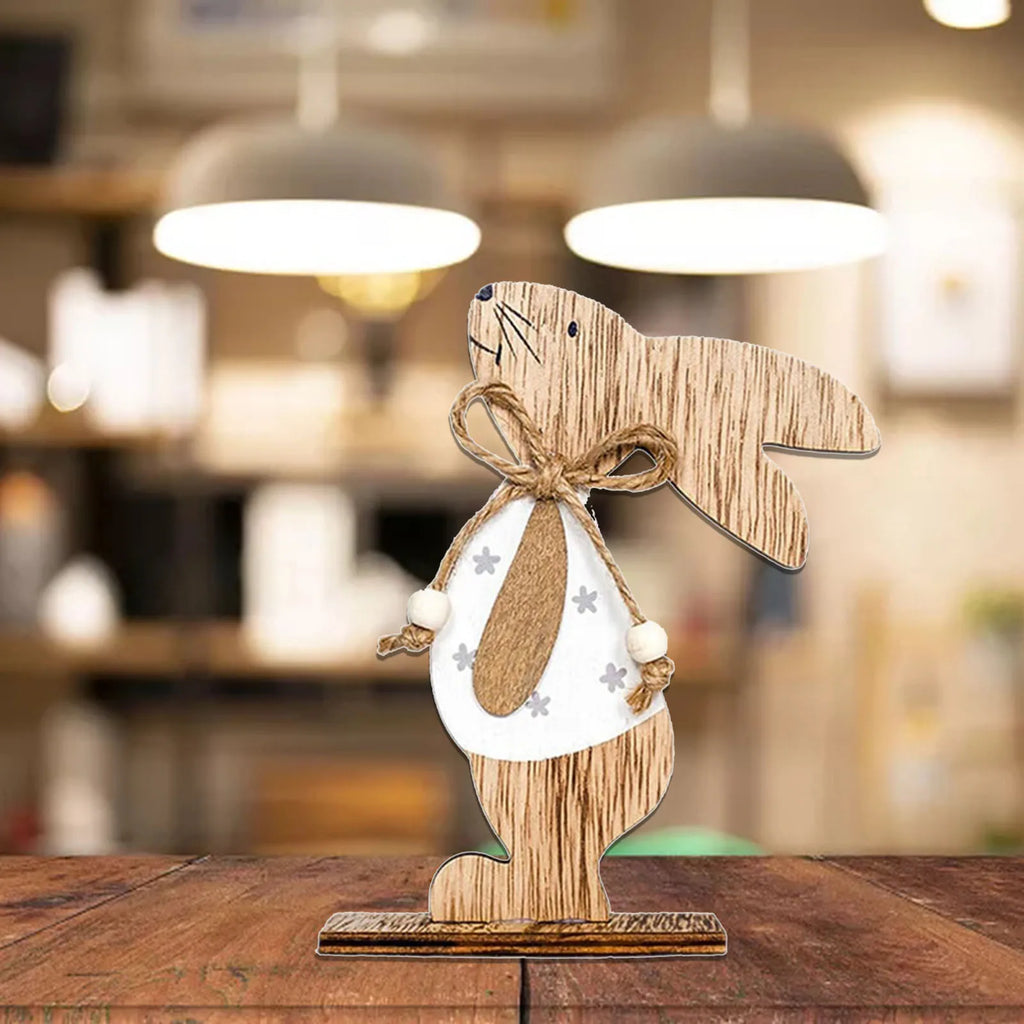 New In Wooden Easter Rabbit Standing Bunny Wood Craft Ornaments For Home Kids Room Easter Party Desktop Decoration Supplies