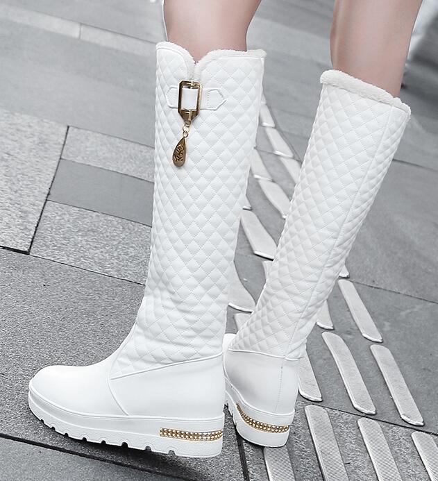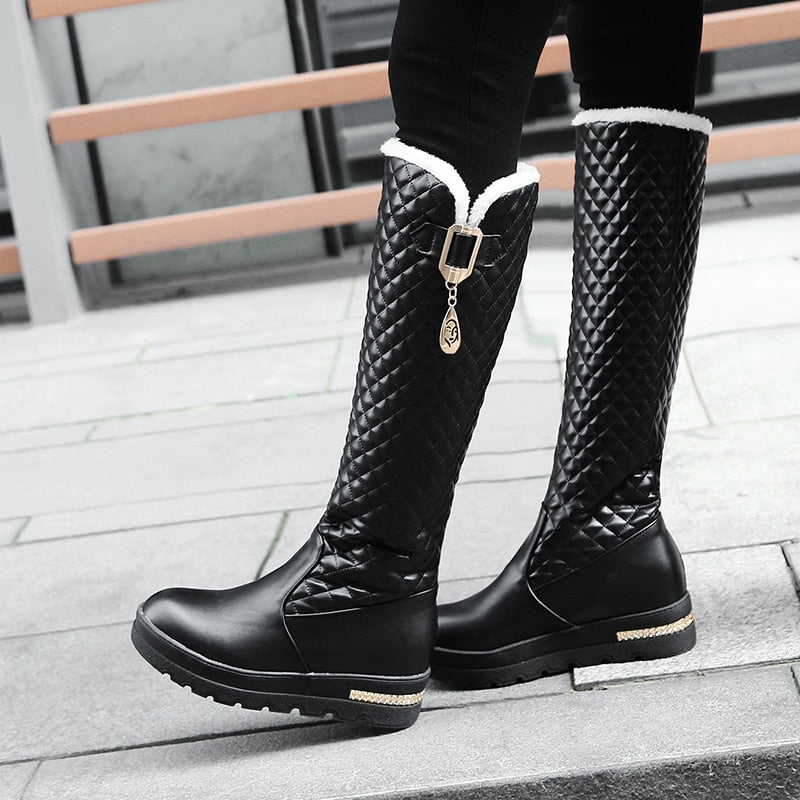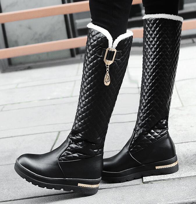 New Women Boots Knee High Boots Square Heels Fashion Round Toe Rubber Sole Woman Leather Shoes Winter Black