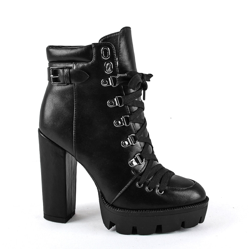 Perixir Fashion Platform Ankle Boots Women 2020 Spring Autumn Black Leather 12cm Thick Heel Boots Ladies Worker Womens Boots