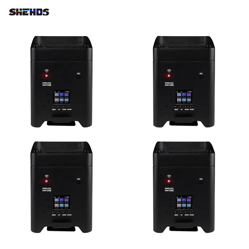 SHEHDS 4pcs Battery LED 6x18w RGBWA+UV 6in1 Par Wireless Remote Control DMX512 Phone WIFE Wash Wall Light For DJ Disco Christmas