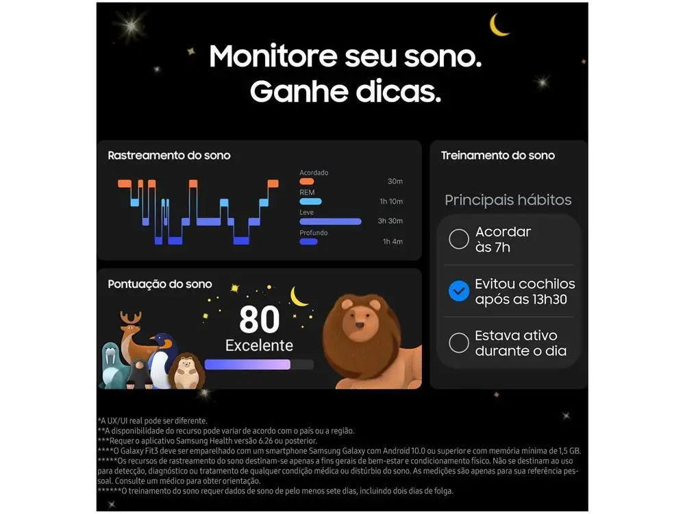 Compatibilidade: Smartphones Android 10.0 ou superior e memória RAM de 1,5GB ou superior. Necessário Samsung Account