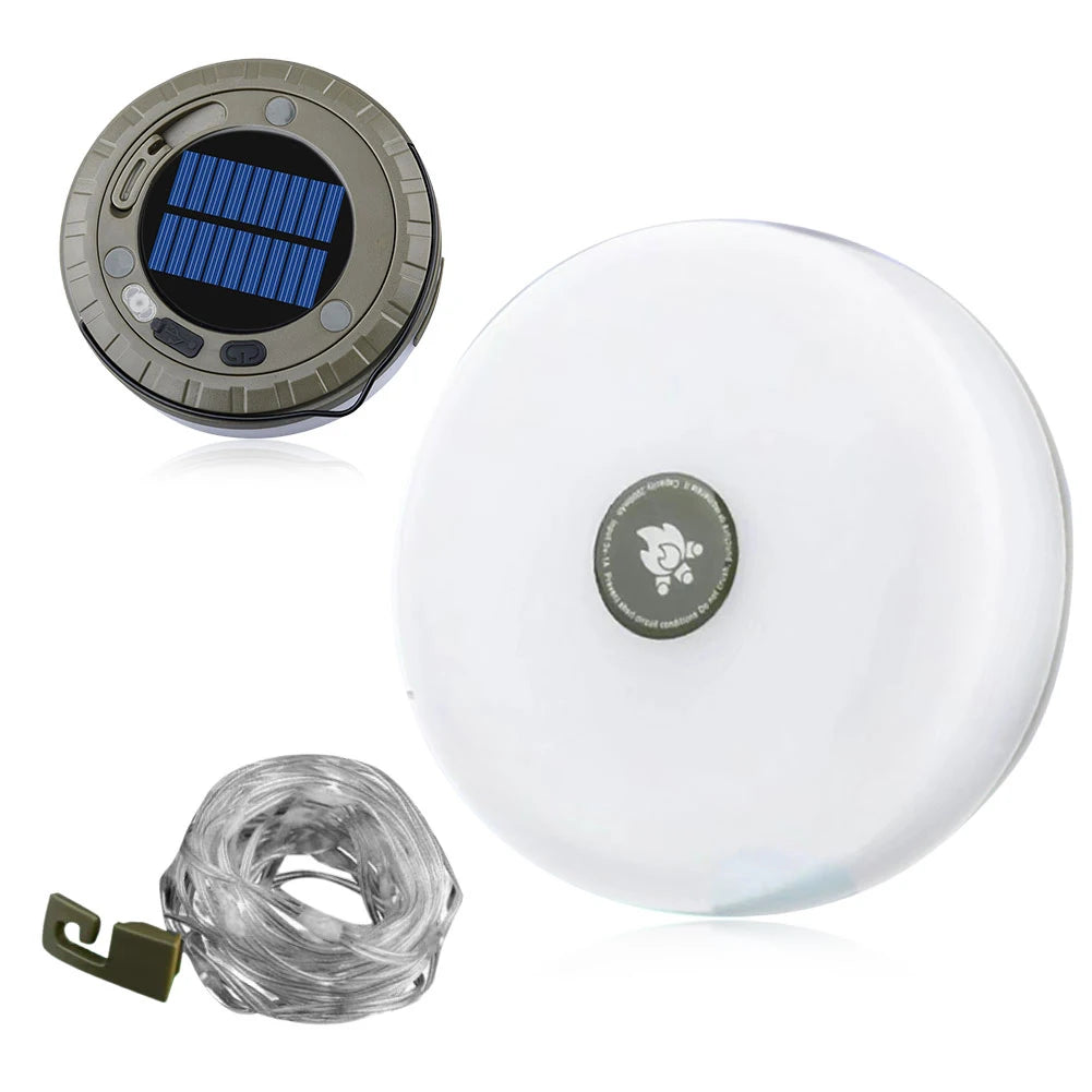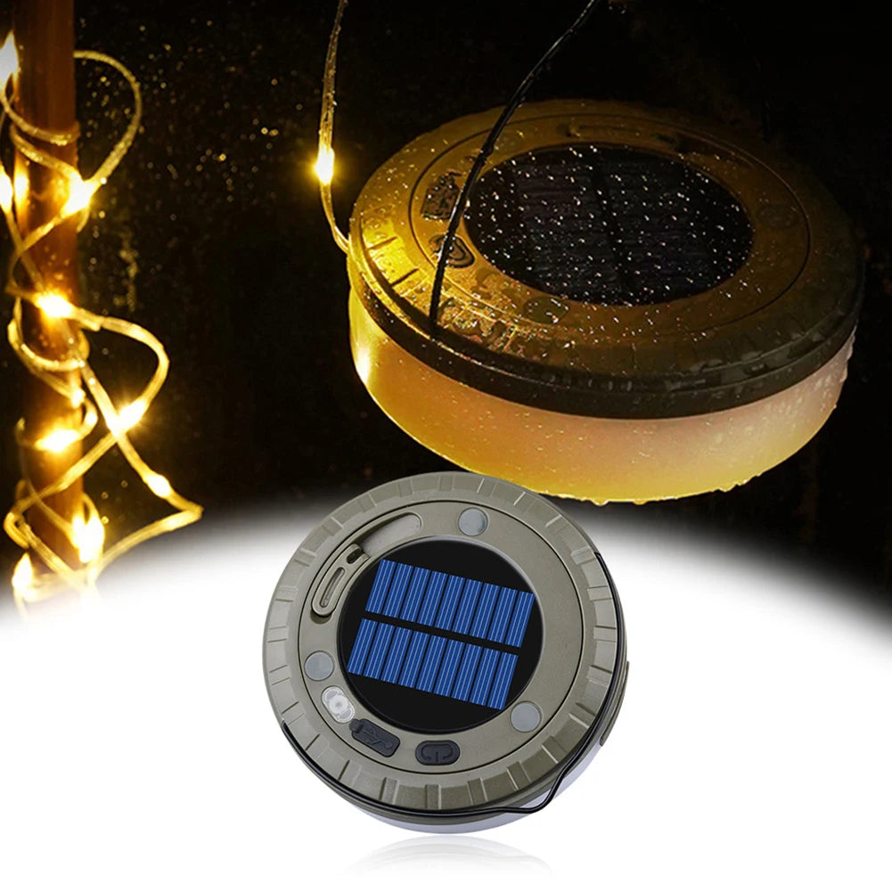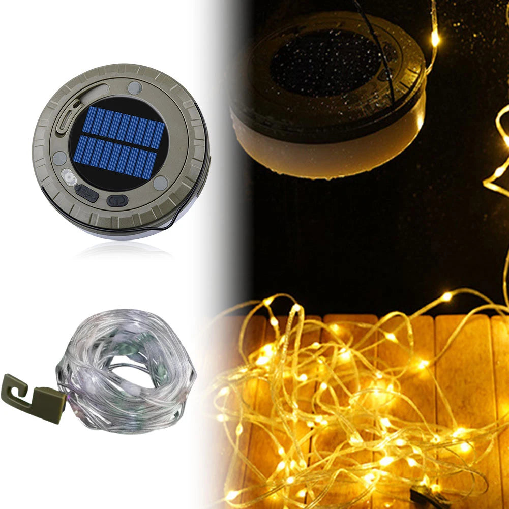 Solar Camping String Lights Rechargeable Camping Lantern Waterproof Hanging Tent Light Camping Light for Hiking Yard Decorations Feature: