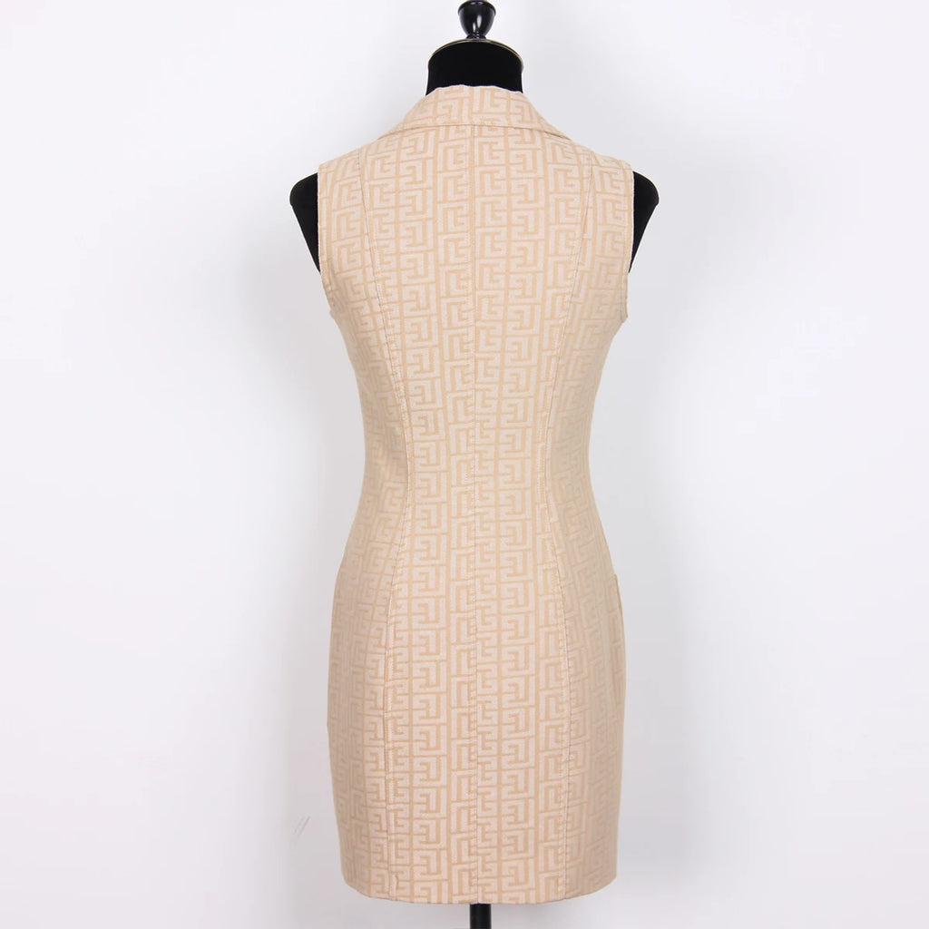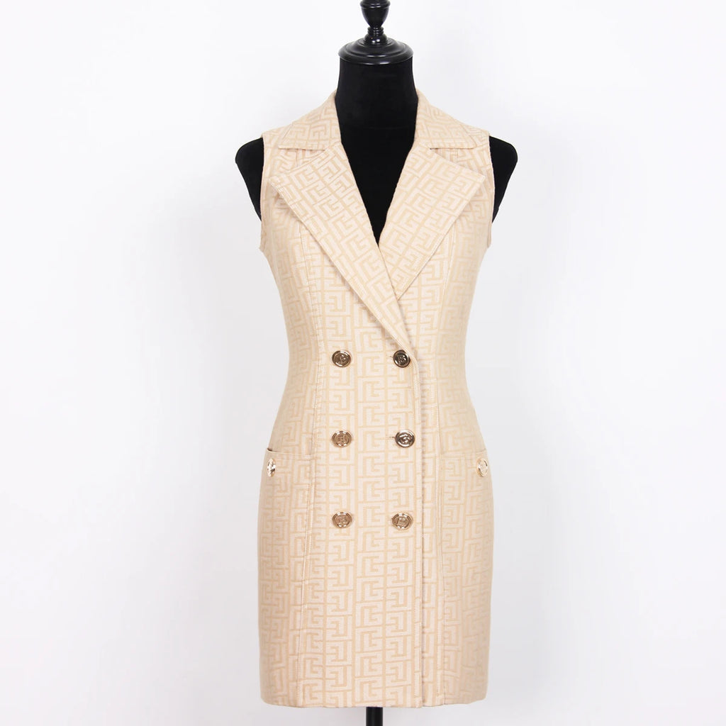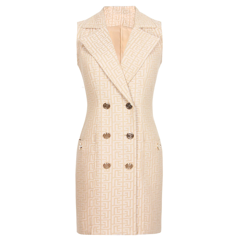 Spring And Autumn New High-quality Jacquard Denim Temperament Commuter Suit Collar Women's Vest Dress