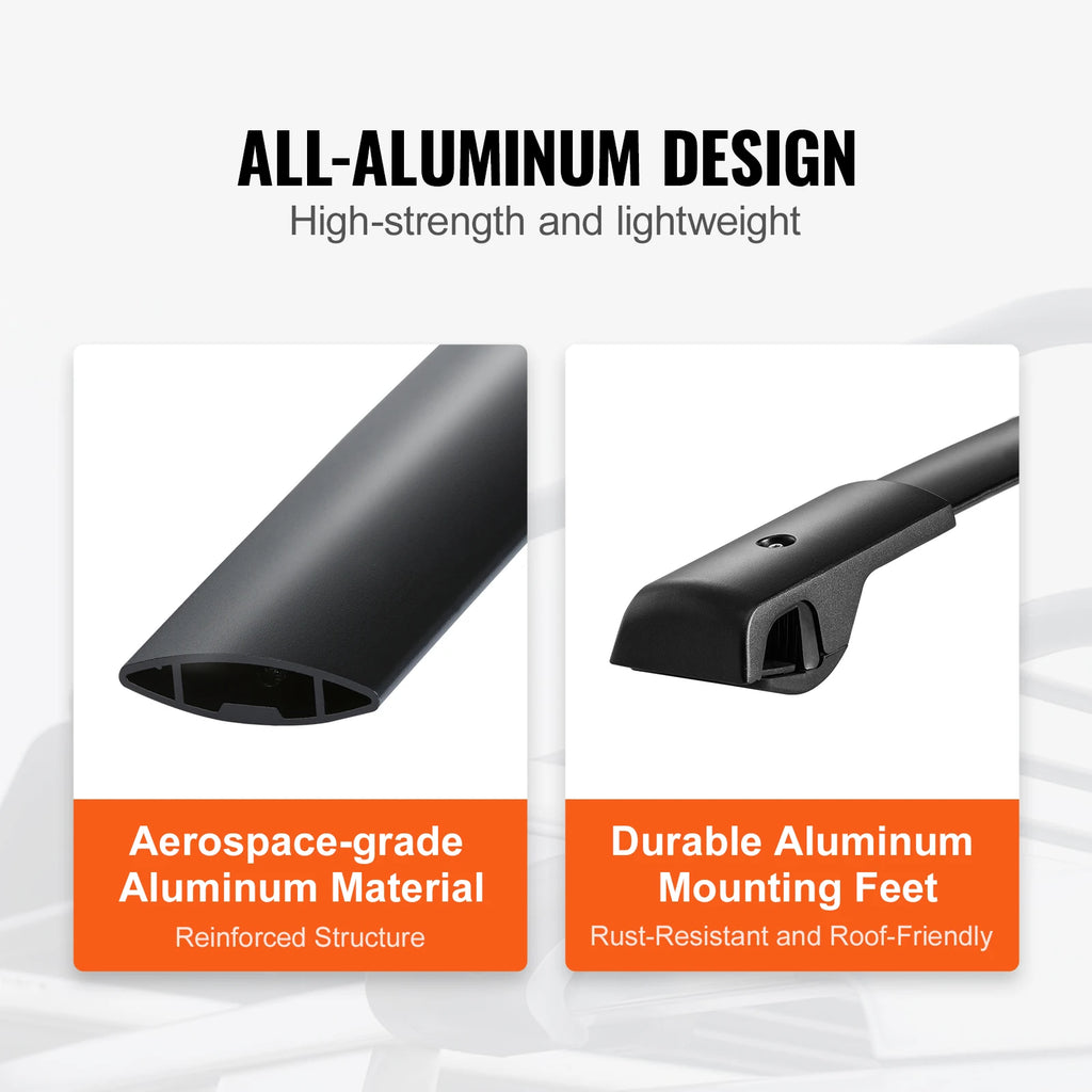 Made from 6063-T6 aluminum, these crossbars are both lightweight and durable. They are corrosion-resistant, ensuring long-term use without adding extra weight to your vehicle.