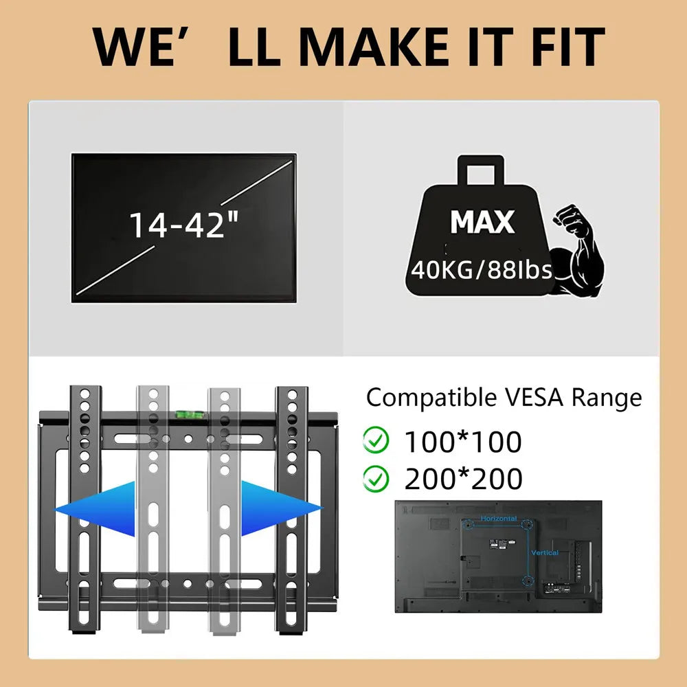 TV Wall Mount Bracket Low Profile Fixed for 14-42 Inch Flat Screen TVs & Monitors Universal TV Monitor Mount Max VESA 200x200mm