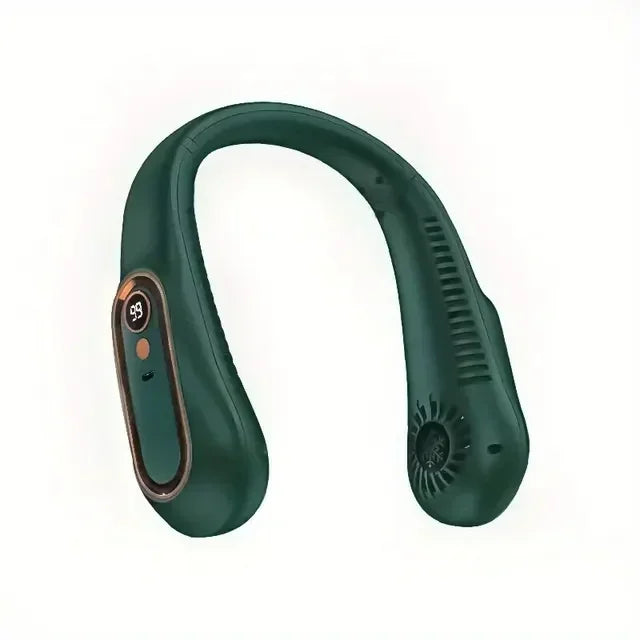 Ventilador de cuello colgante, Enfriador de aire portátil de verano, ventilador de refrigeración USB con 5 velocidades y pantallas digitales, súper tecnología y sin aspas