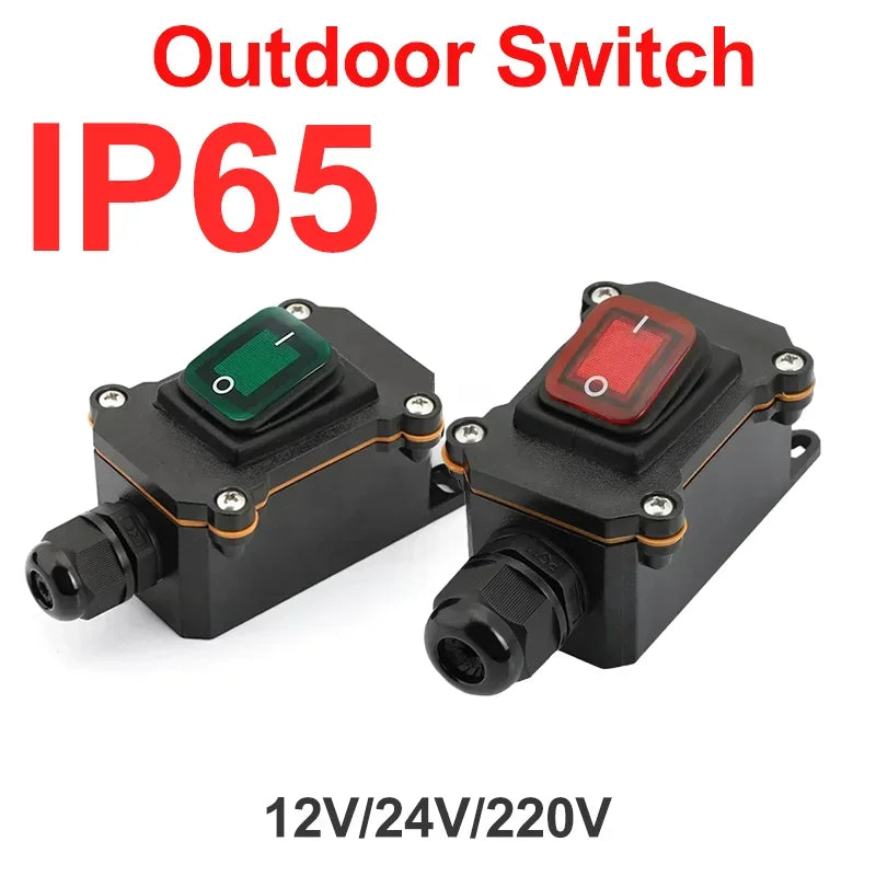 Waterproof Marine Rocker Switch with LED Outdoor Rainproof Junction Box Inline Power Cord Power Switch 12V/24V/220V IP65