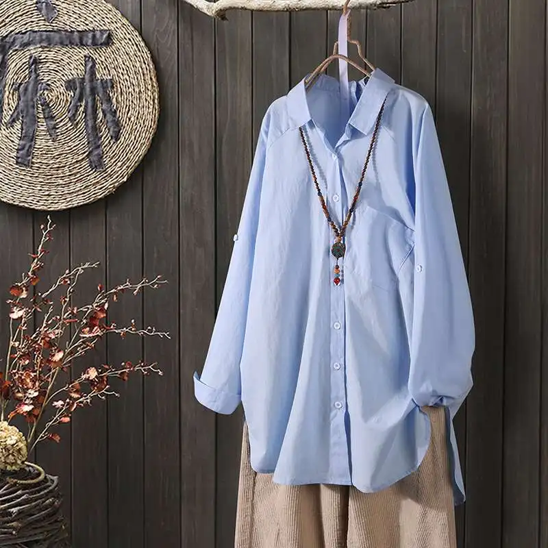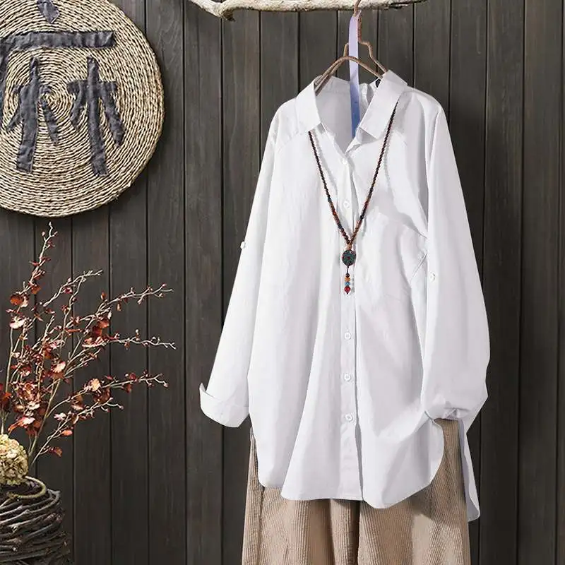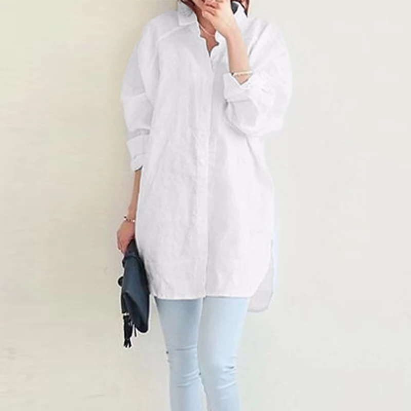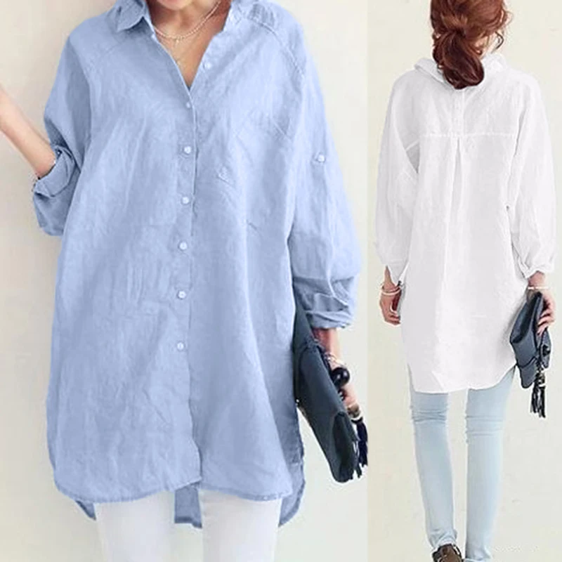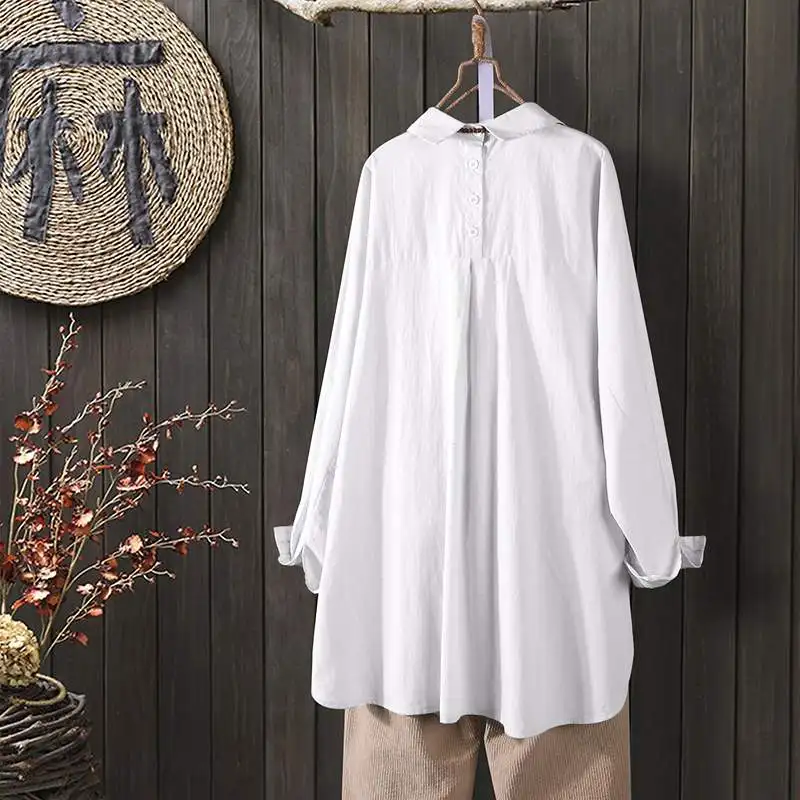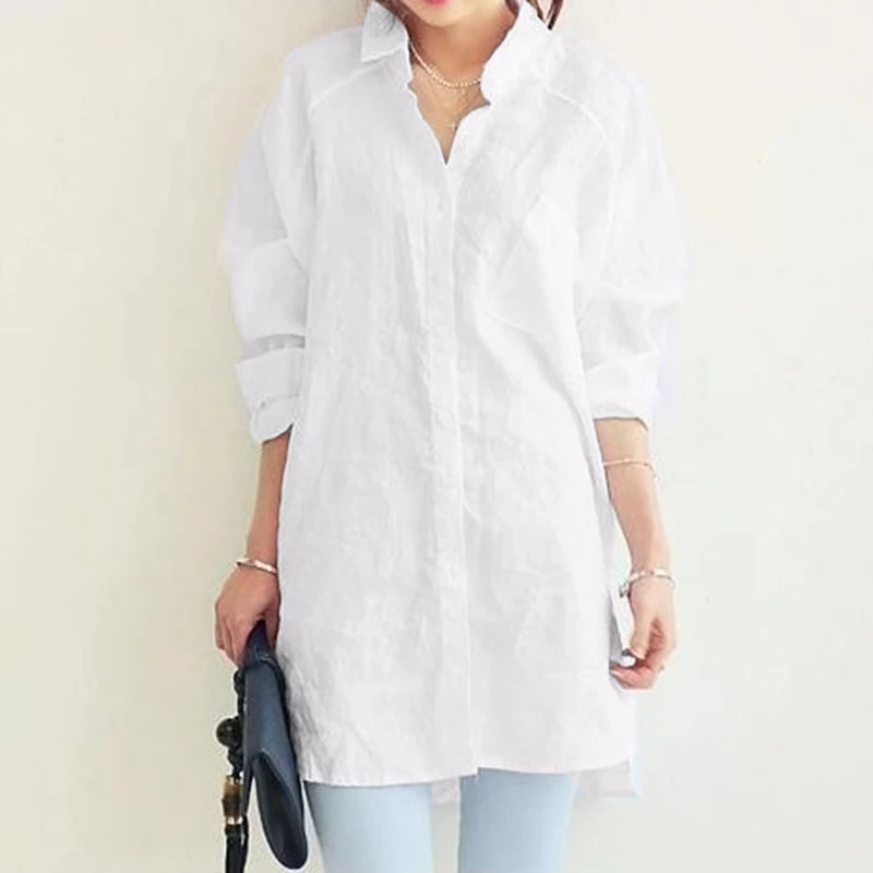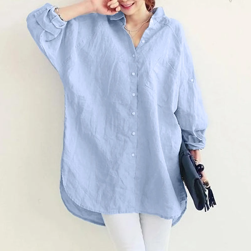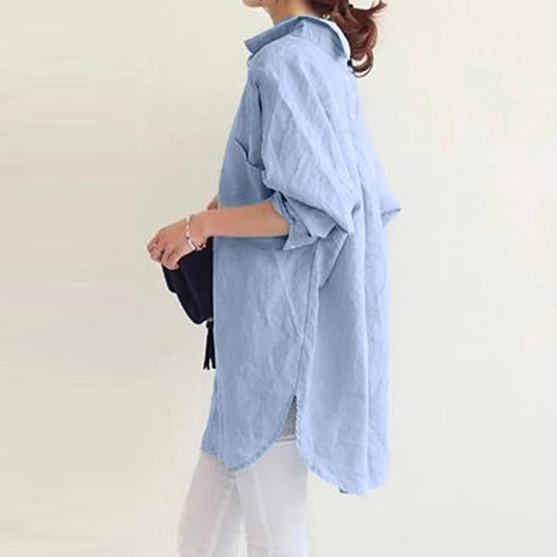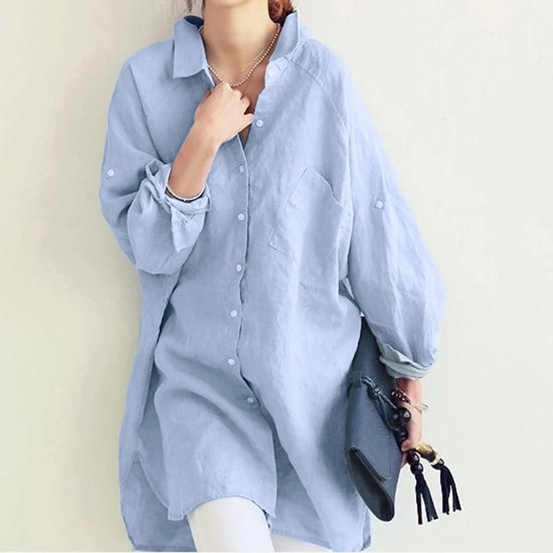 2022 ZANZEA, blusa para mujer, camisas con botones elegantes, Blusas casuales de manga larga, Blusas femeninas con solapa, túnica sólida, camisa holgada