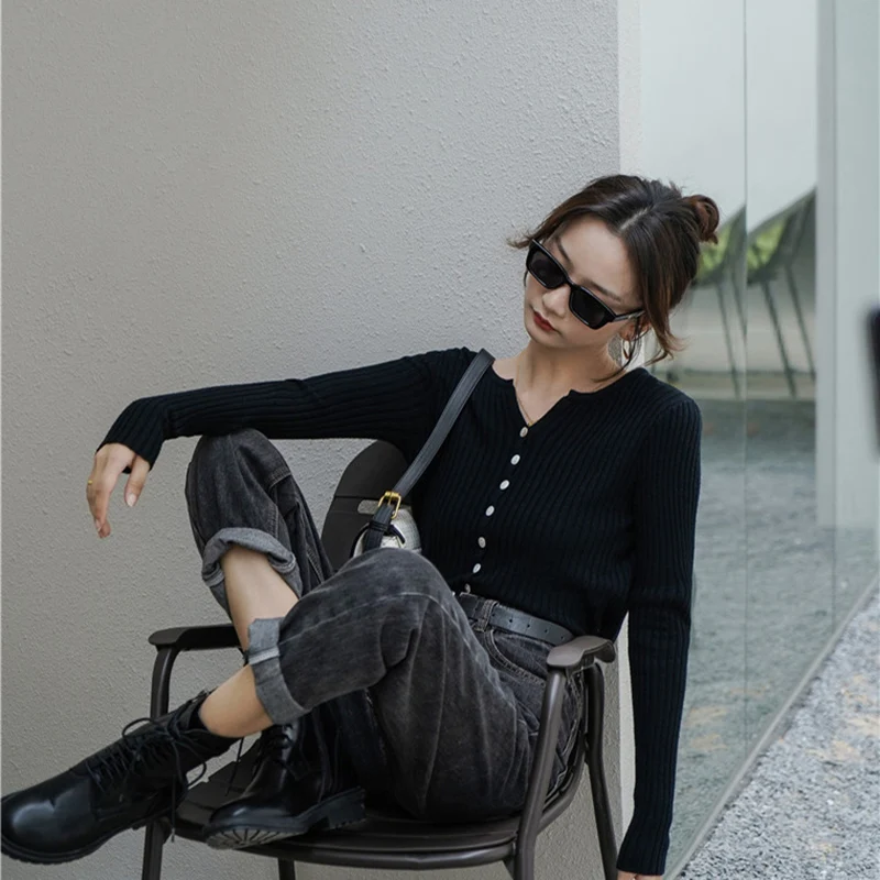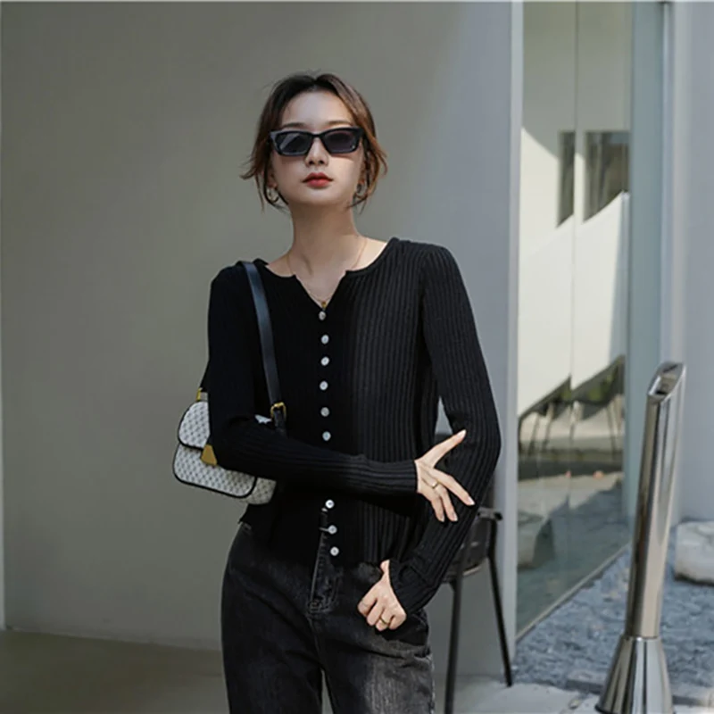 Otoño moda mujer cárdigan suéter 2022 nuevo estilo Casual tejido cárdigan envío gratis negro cárdigan suéter mujer