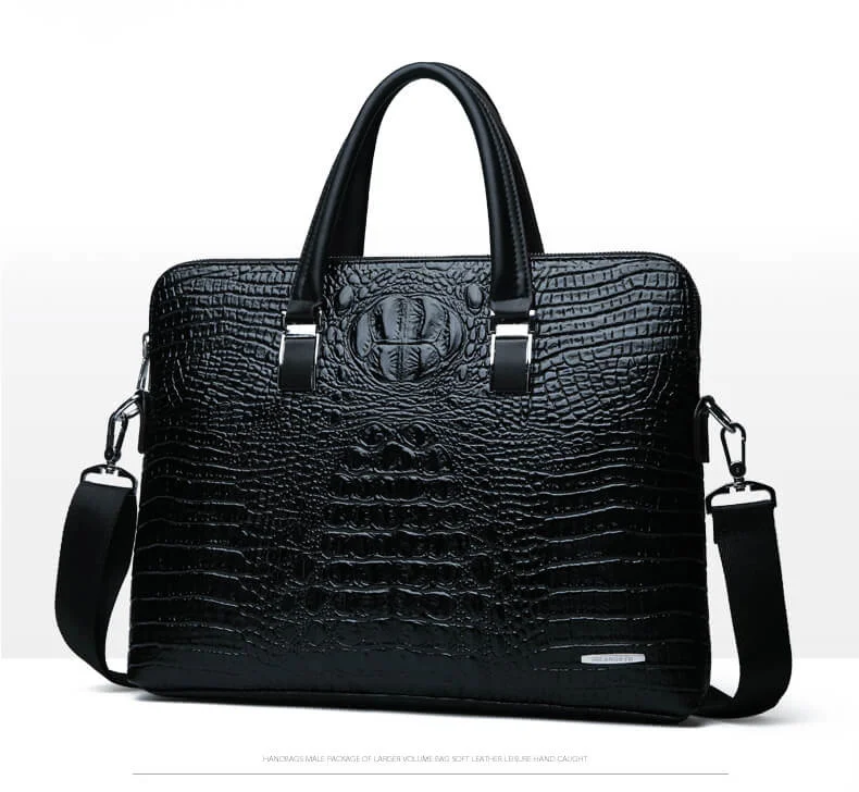 Double Layer Men's Handbag Men Briefcases Leather Handbags Crocodile Pattern Shoulder Bag Male Business Men Laptop Bag Sac Homme