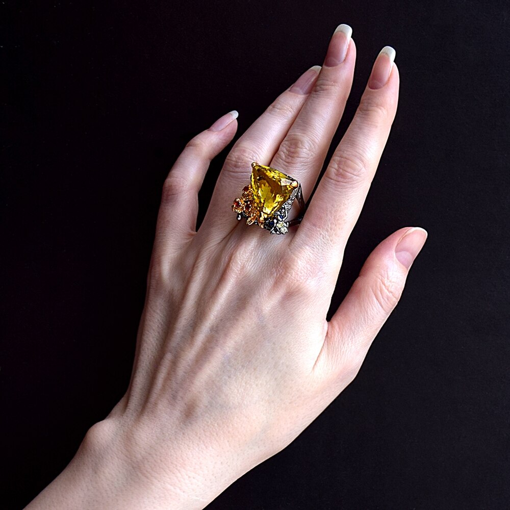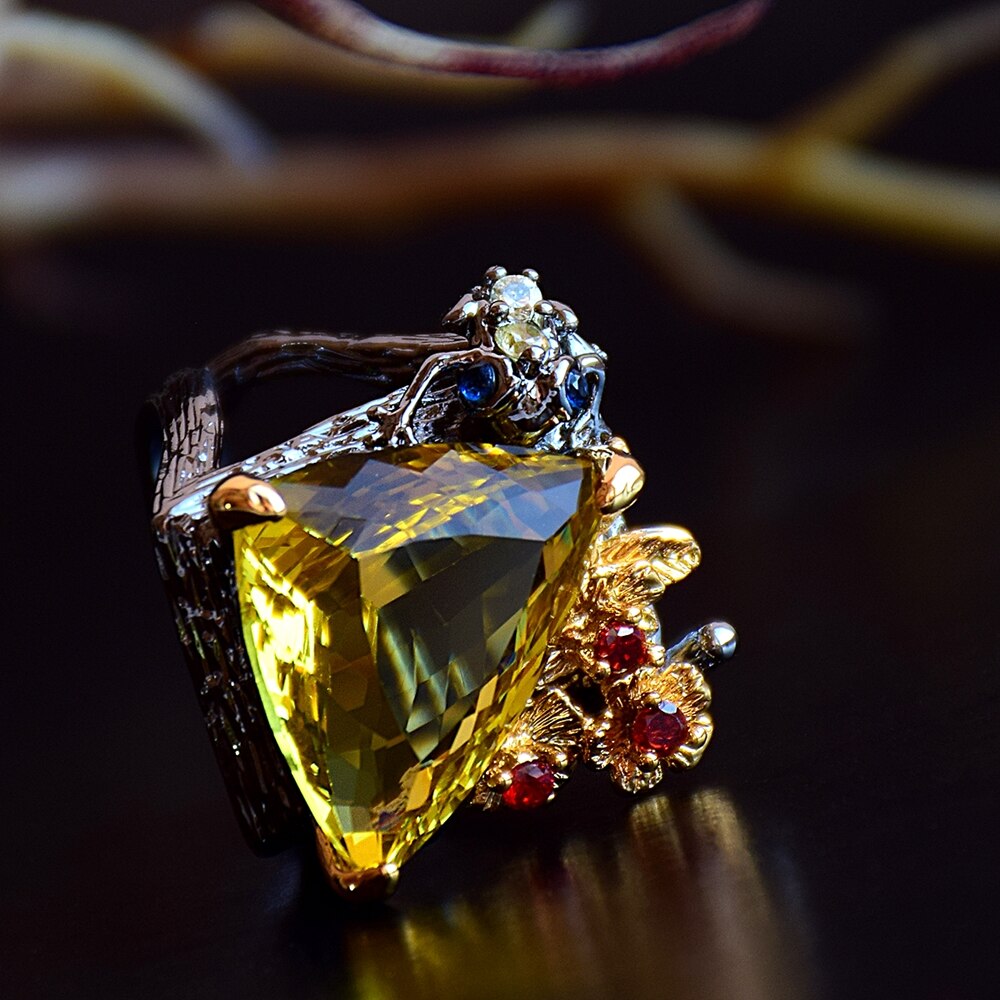 DreamCarnival 1989 Chic Fashion Jewelry Ring Big Golden Triangle Zircon Flores rojas Anillos de boda Envío de la gota Hot Pick WA11658