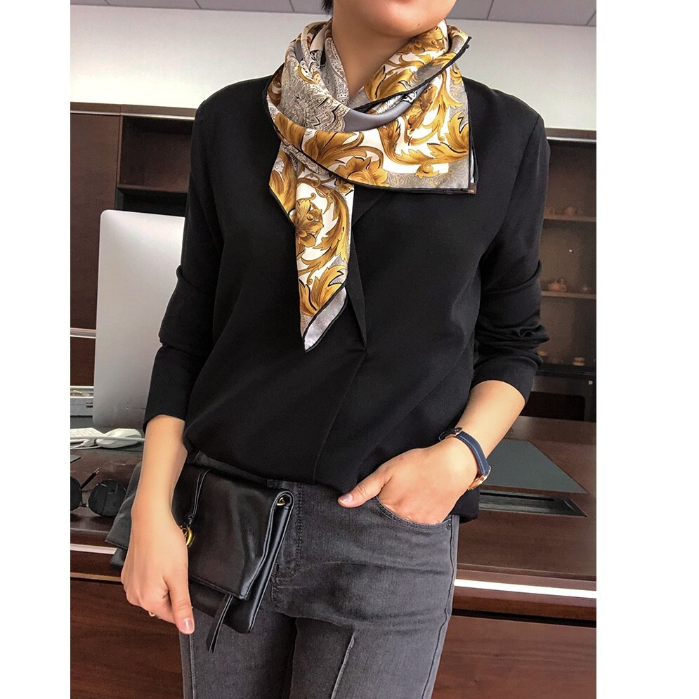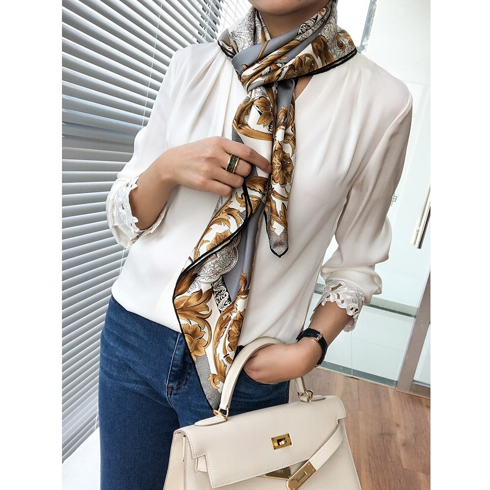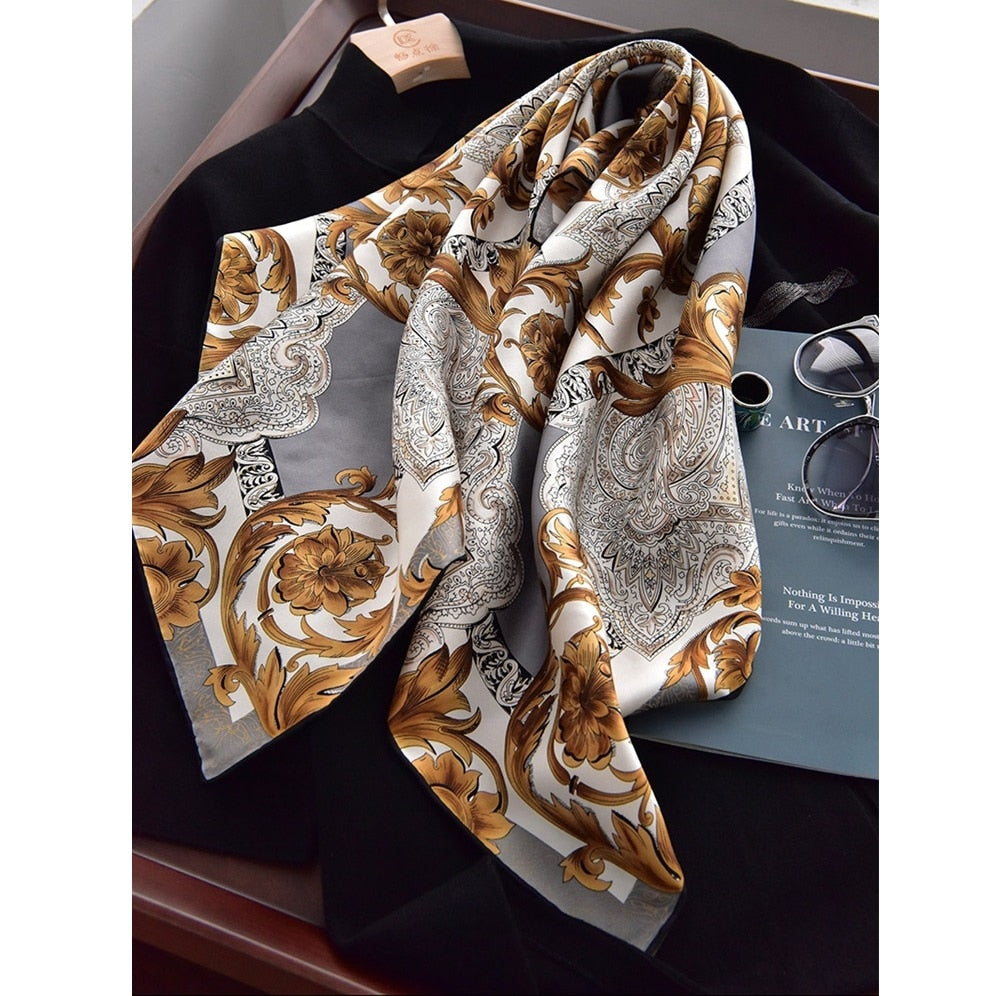 Fabuloso estampado 100% sarga bufanda de seda chal moda mujer cabeza bufandas Hijab 88*88cm