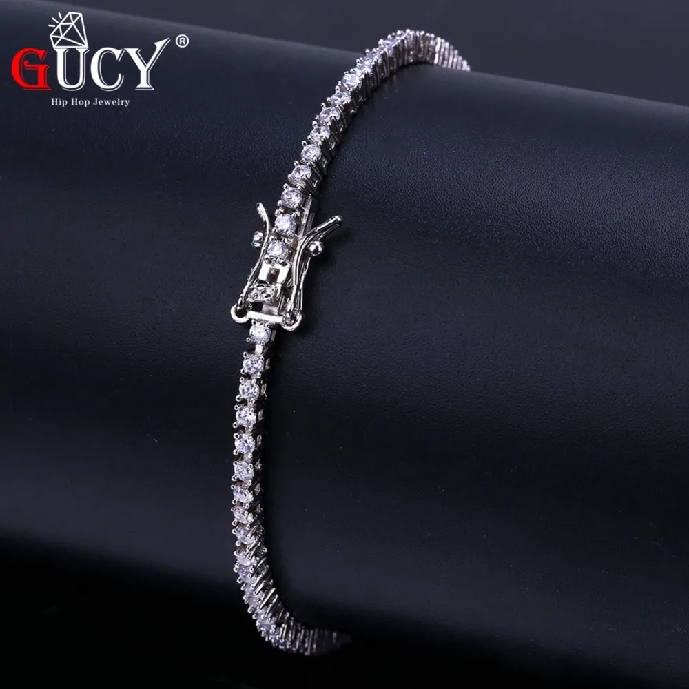 GUCY 3mm 4mm 5mm 6mm Mens AAA Cubic Zirconia tenis cadena pulsera Hip Hop joyería Iced Out 1 fila CZ regalo de cumpleaños