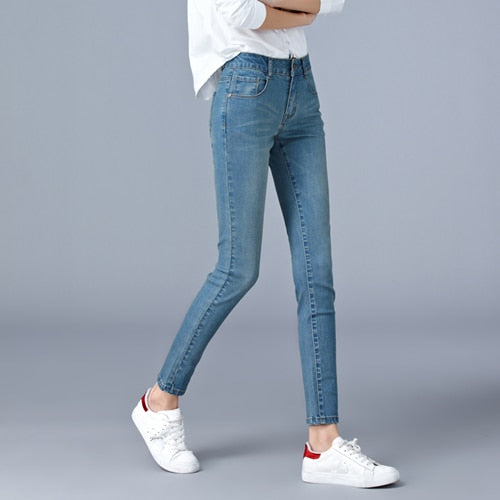 Jeans mujer cintura alta Largo completo skinny lápiz negro azul Denim pants 100kg