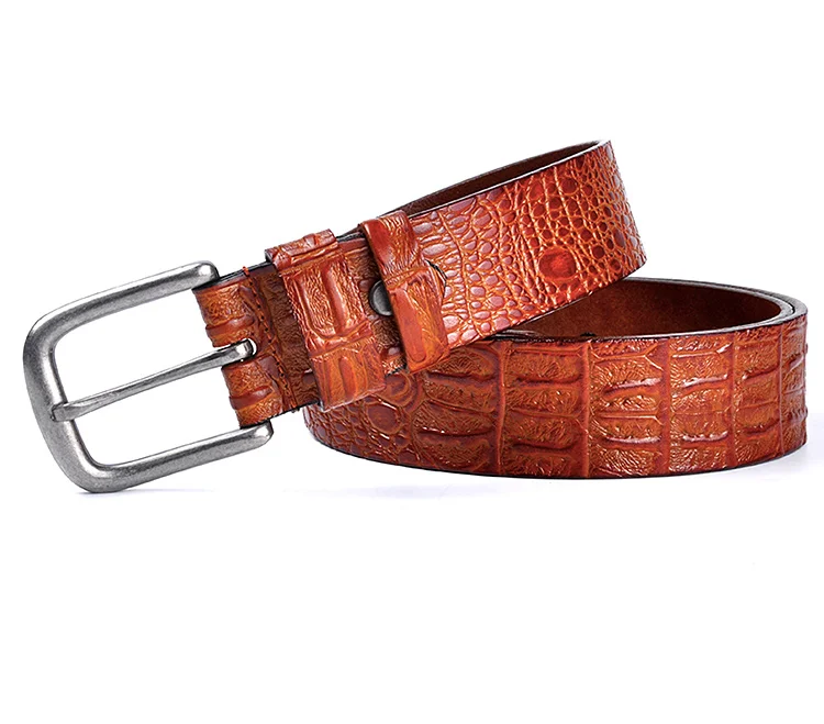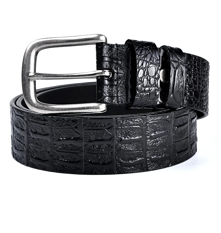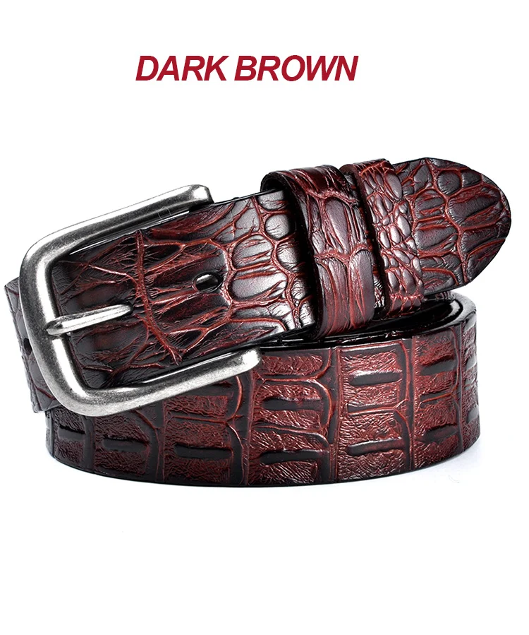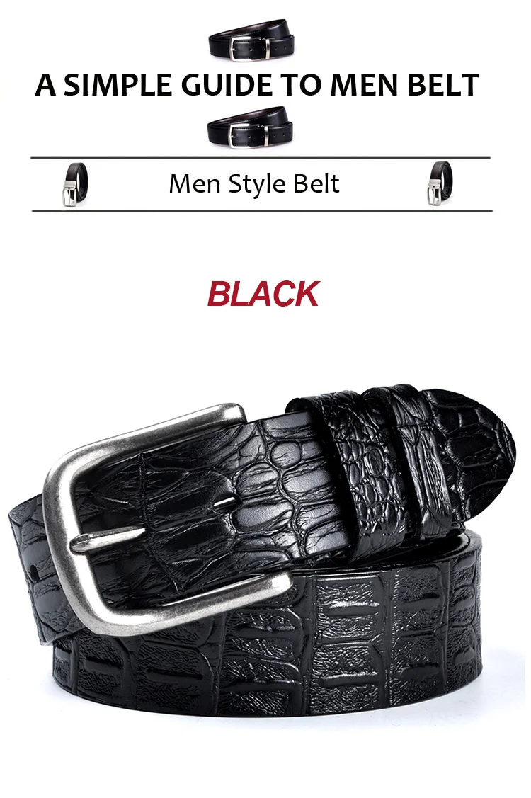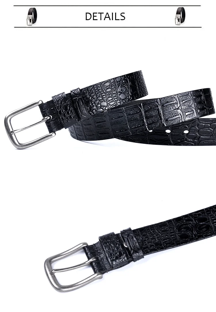 Men's Cowskin Belt Crocodile Pattern Luxury Designer Belts Men High Quality 100% Genuine Leather Ancient Silver Metal Buckle