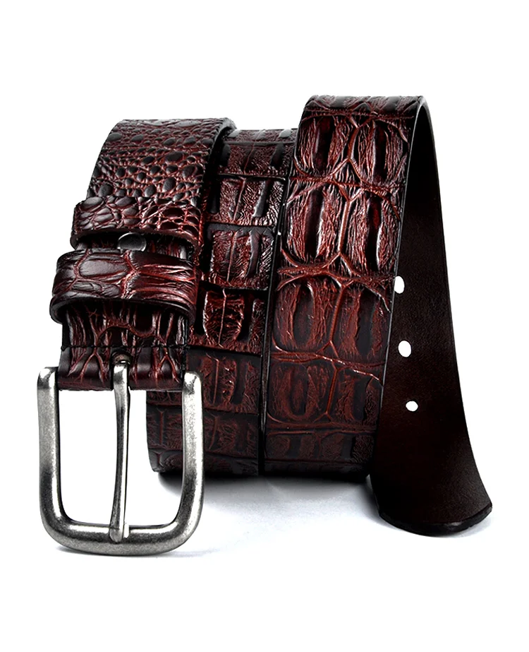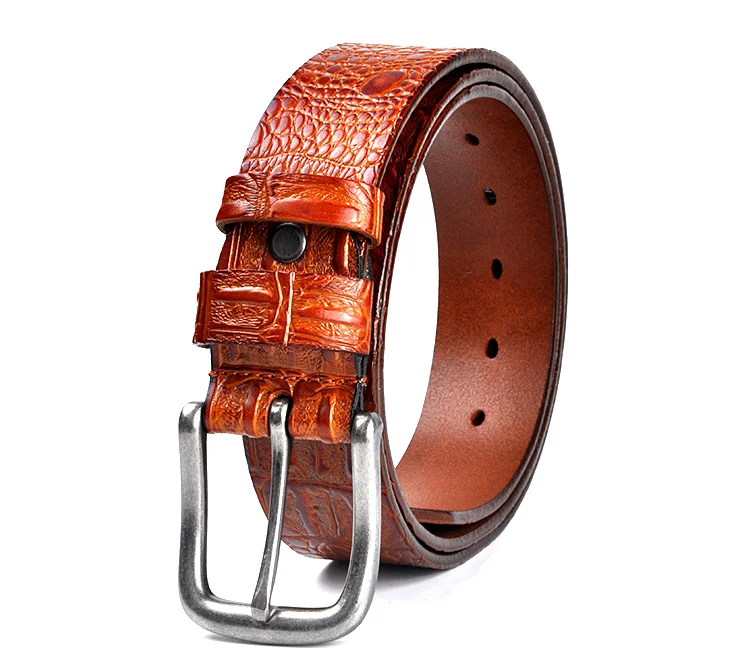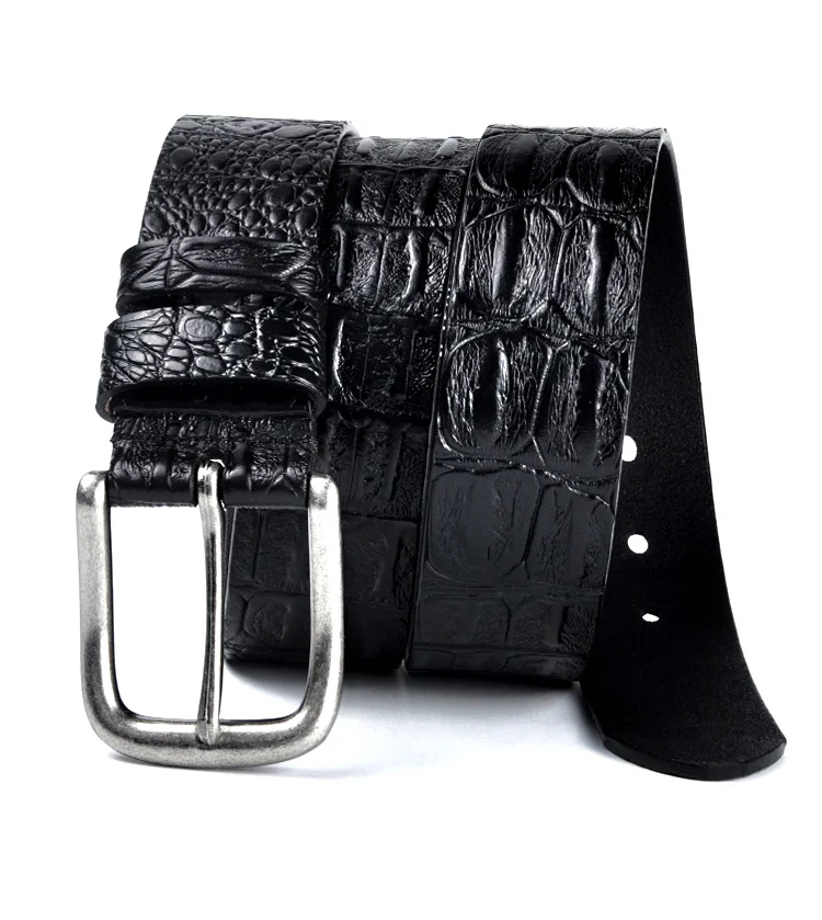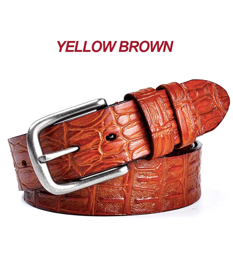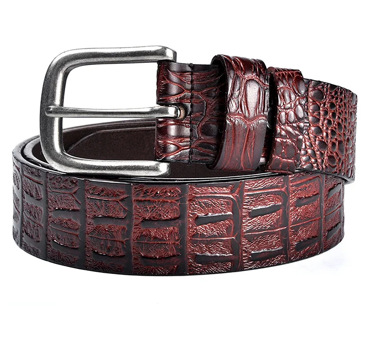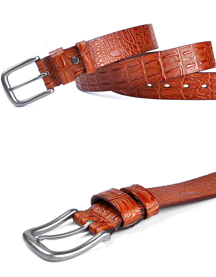 Men's Cowskin Belt Crocodile Pattern Luxury Designer Belts Men High Quality 100% Genuine Leather Ancient Silver Metal Buckle