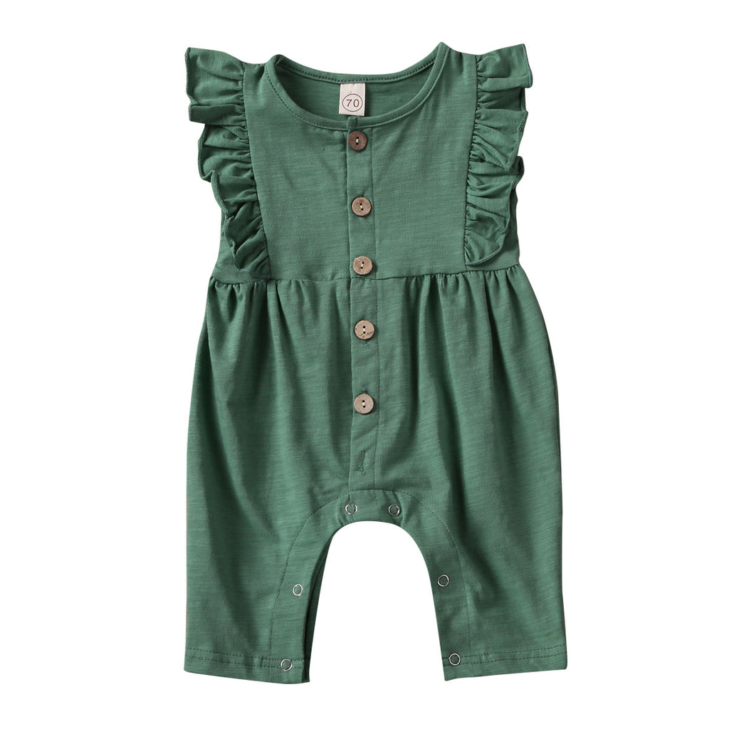 Pudcoco US Stock 0-18M Newborn Infant Baby Girl Clothes Ruffle Romper Sleeveless Jumpsuit Solid Cotton Home Outfit