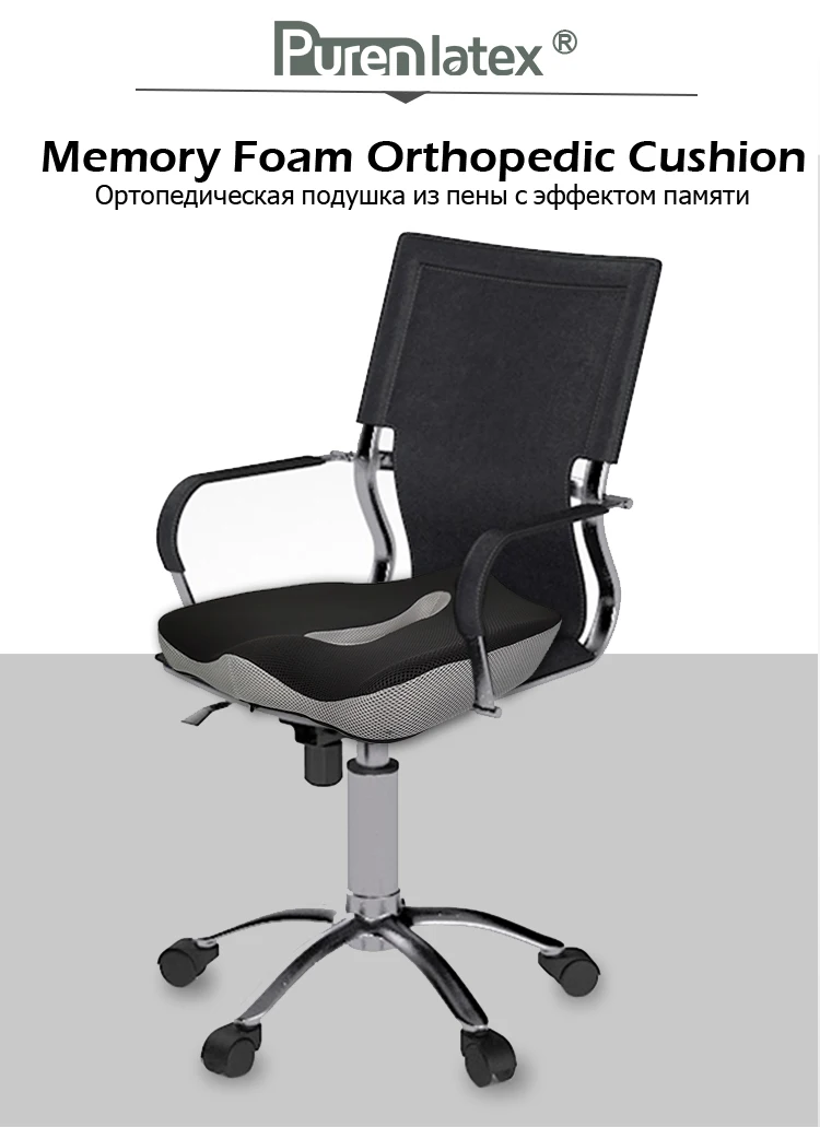 PurenLatex-cojín ortopédico para silla de espuma viscoelástica, almohadilla para asiento de oficina, tratamiento para hemorroides, asiento de coche, gran alivio del dolor, coxis, almohada