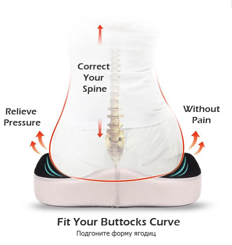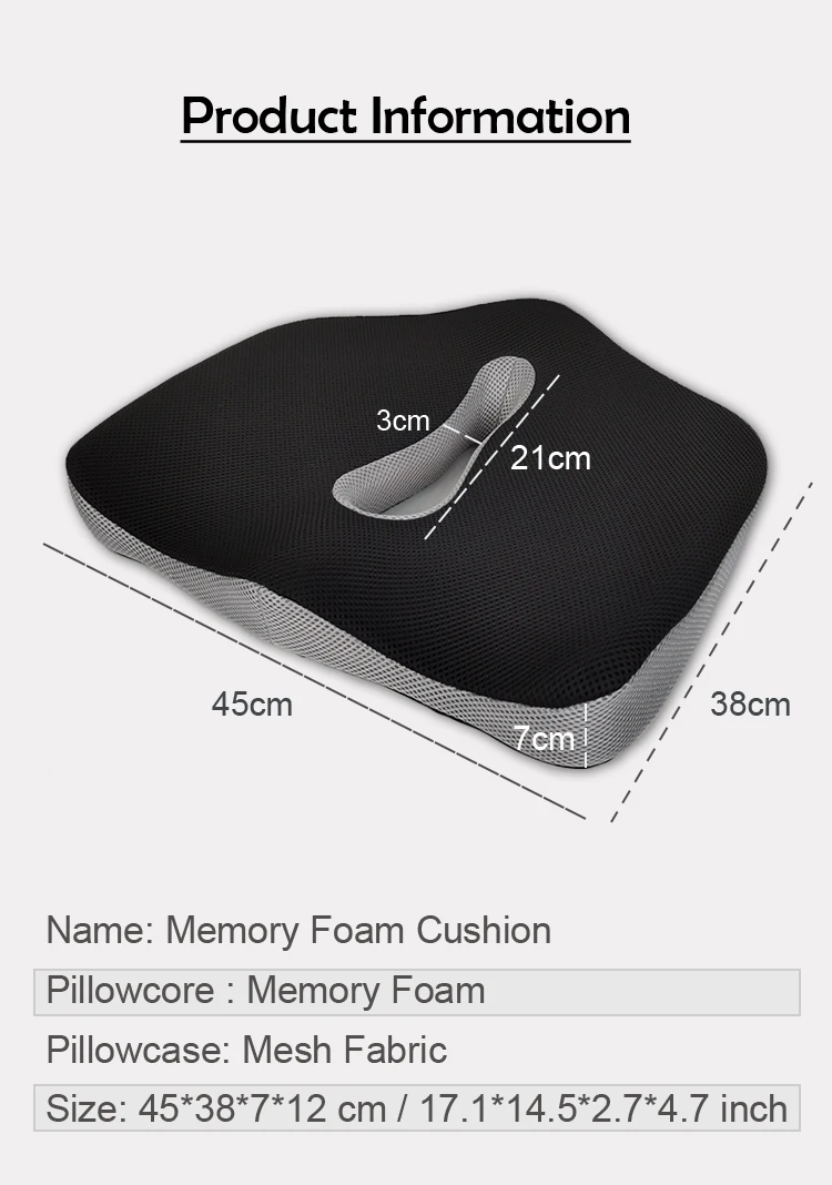 Silla de espuma viscoelástica para coxis, almohada ortopédica, almohadilla para asiento de oficina, tratamiento para hemorroides, asiento de coche, cojín grande para aliviar el dolor, almohada para coxis