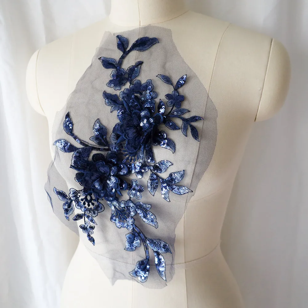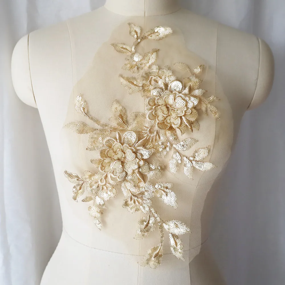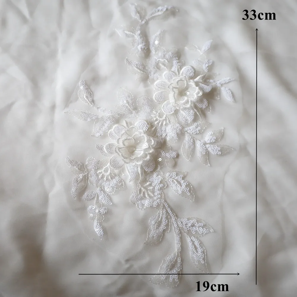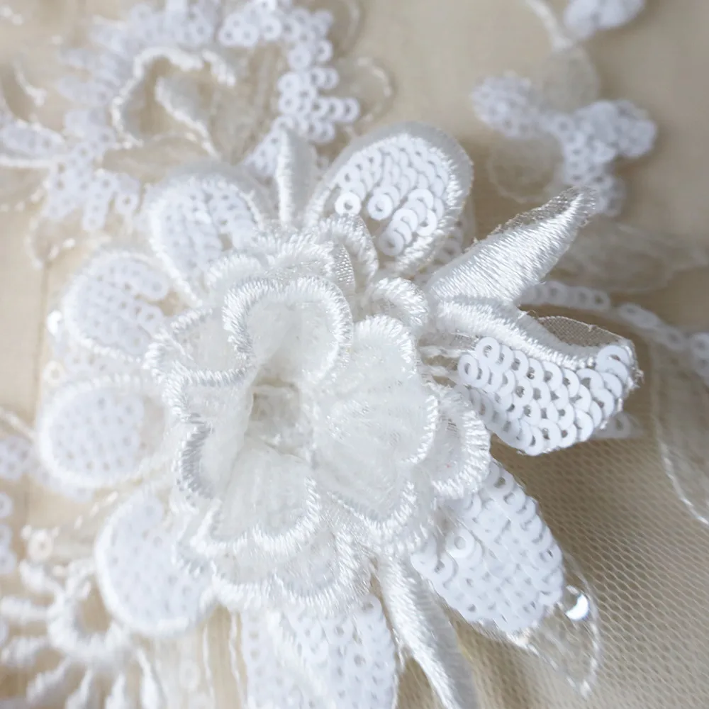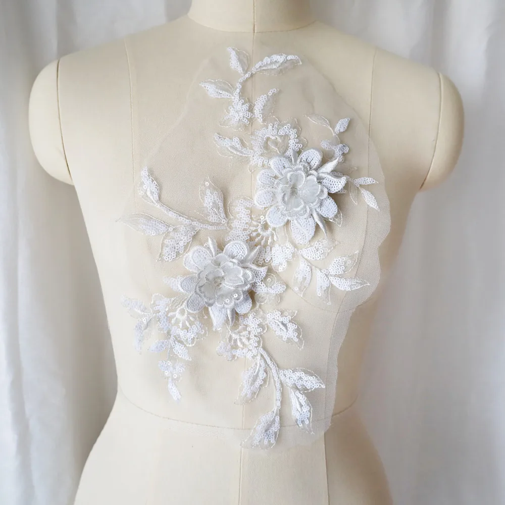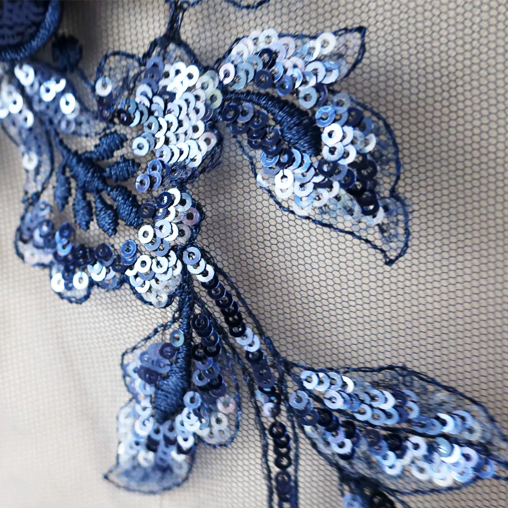 Sequin Embroidered Flower Applique Lace Fabric Trim Mesh Collar Wedding Bridal Gown Sewing Patch Party Dress Decor DIY Crafts