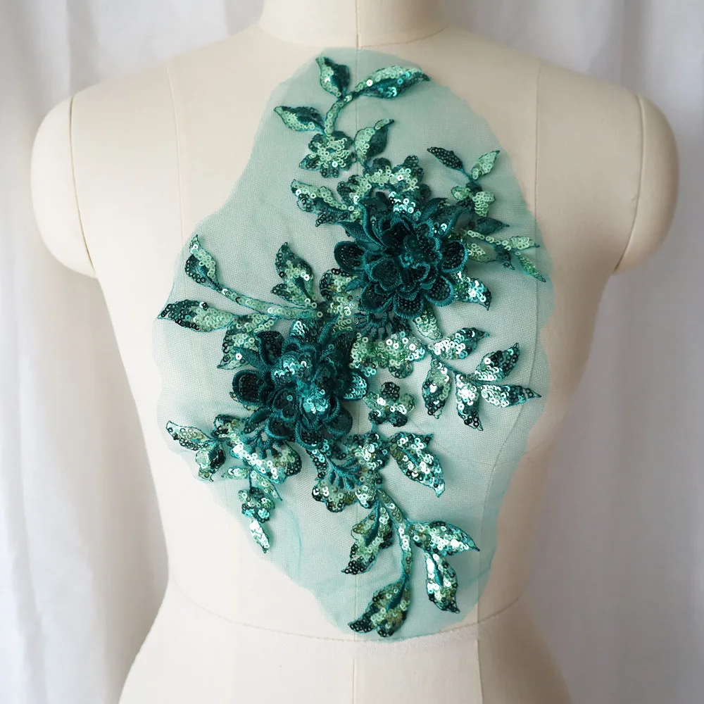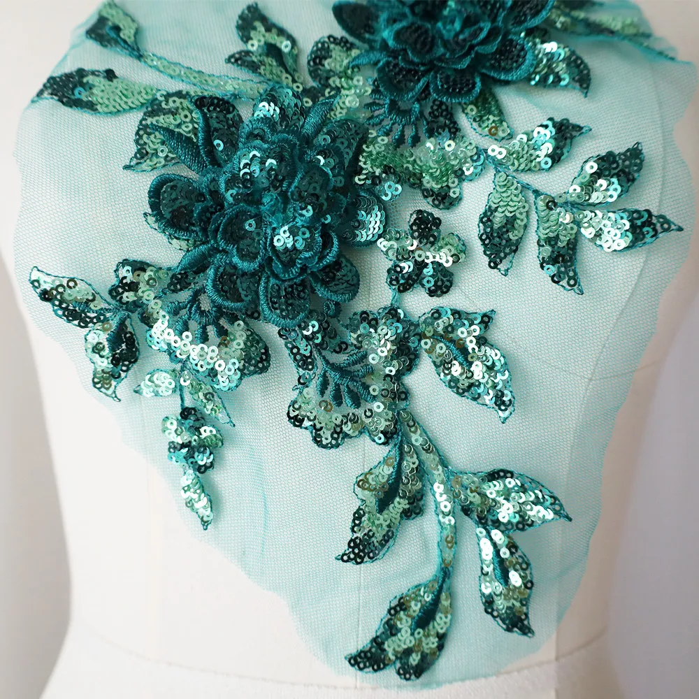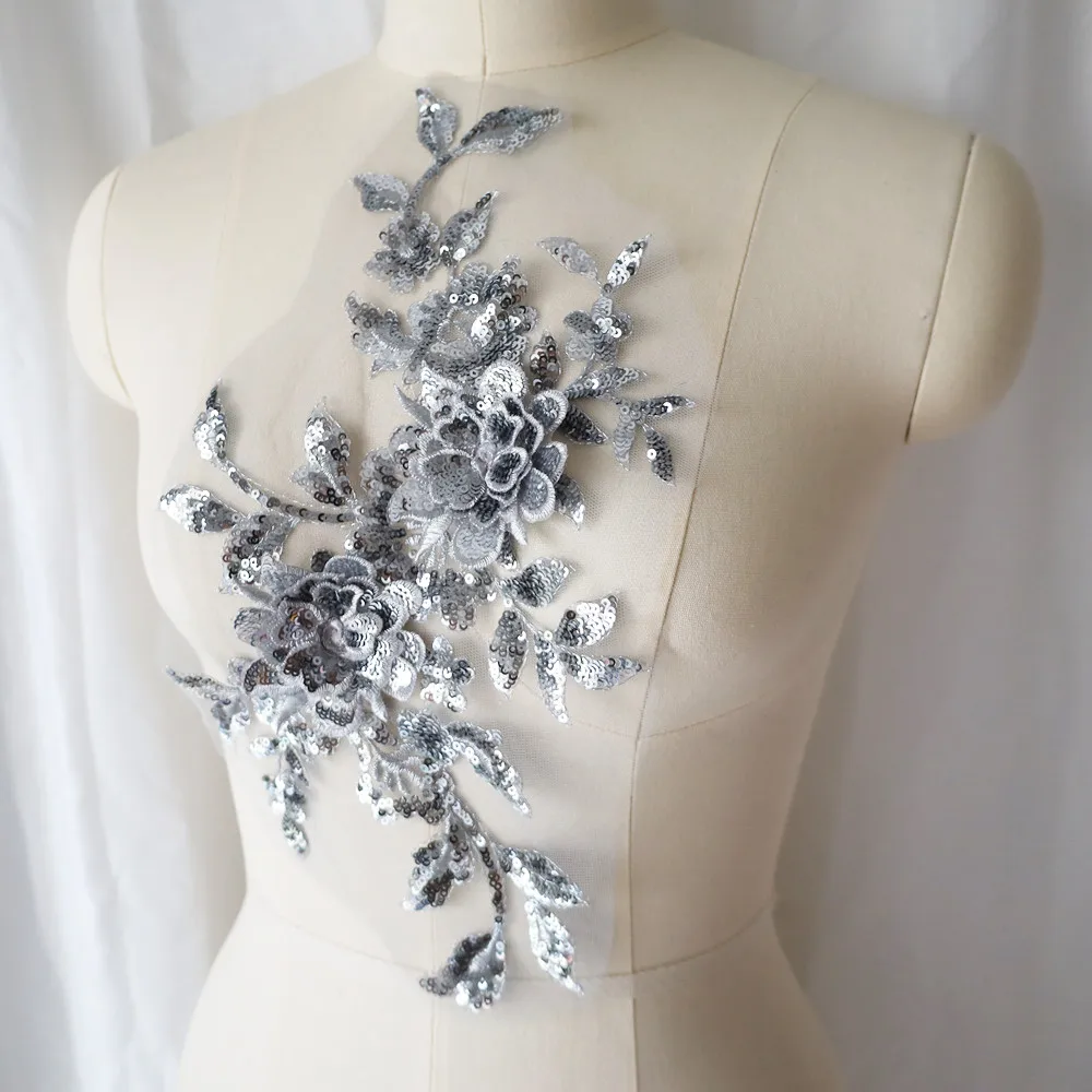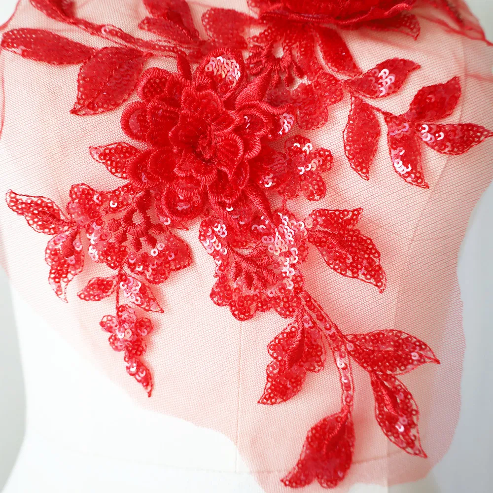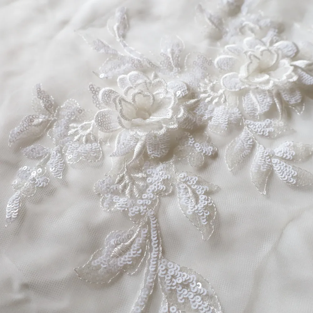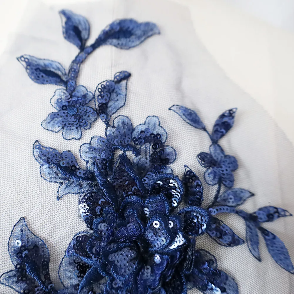 Sequin Embroidered Flower Applique Lace Fabric Trim Mesh Collar Wedding Bridal Gown Sewing Patch Party Dress Decor DIY Crafts