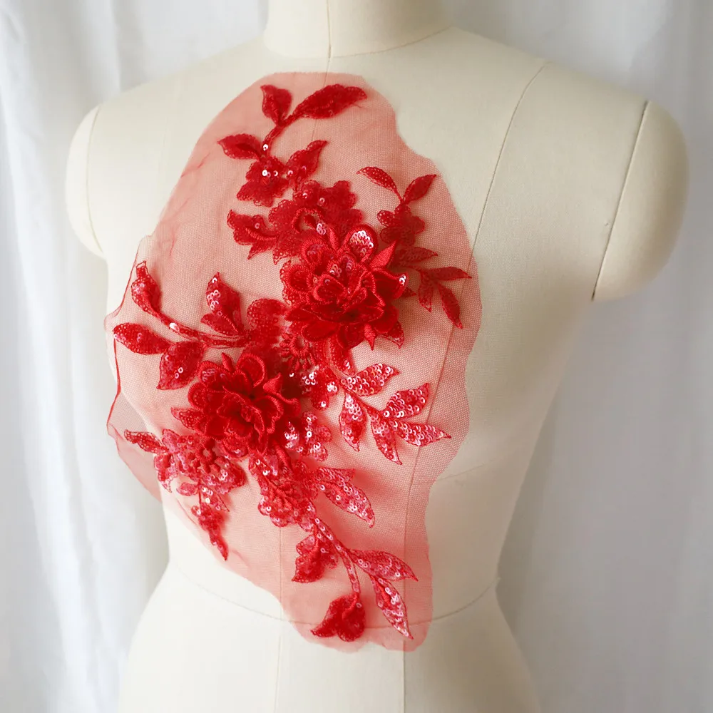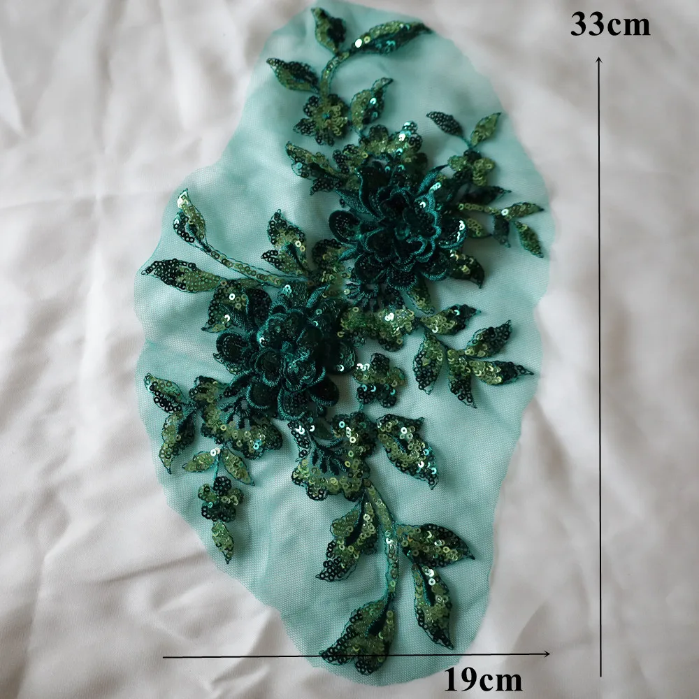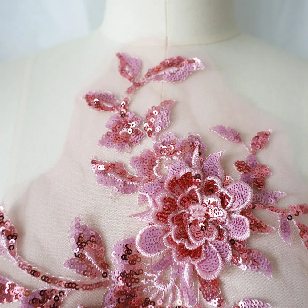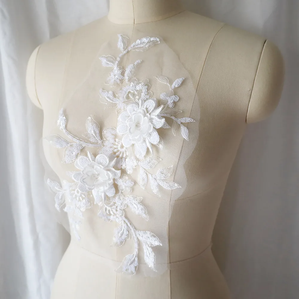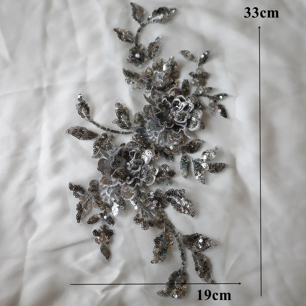 Sequin Embroidered Flower Applique Lace Fabric Trim Mesh Collar Wedding Bridal Gown Sewing Patch Party Dress Decor DIY Crafts