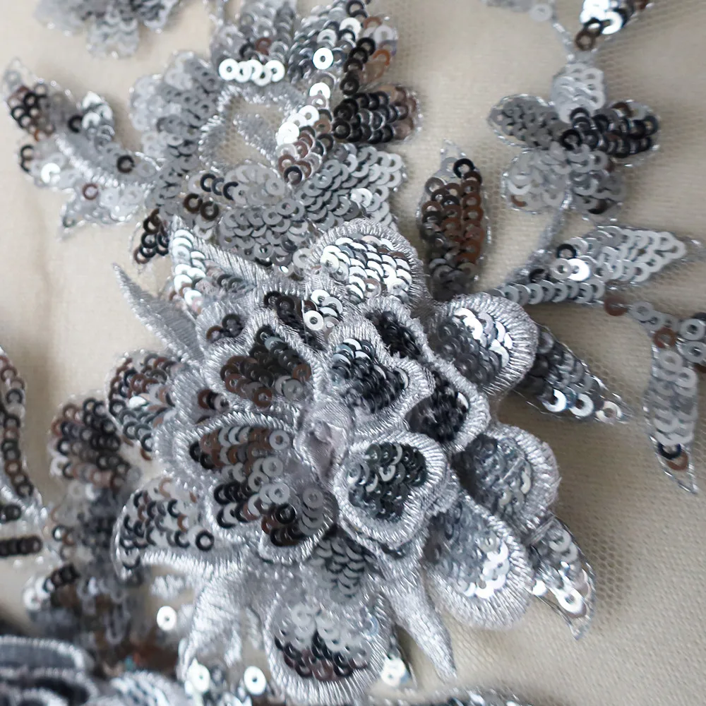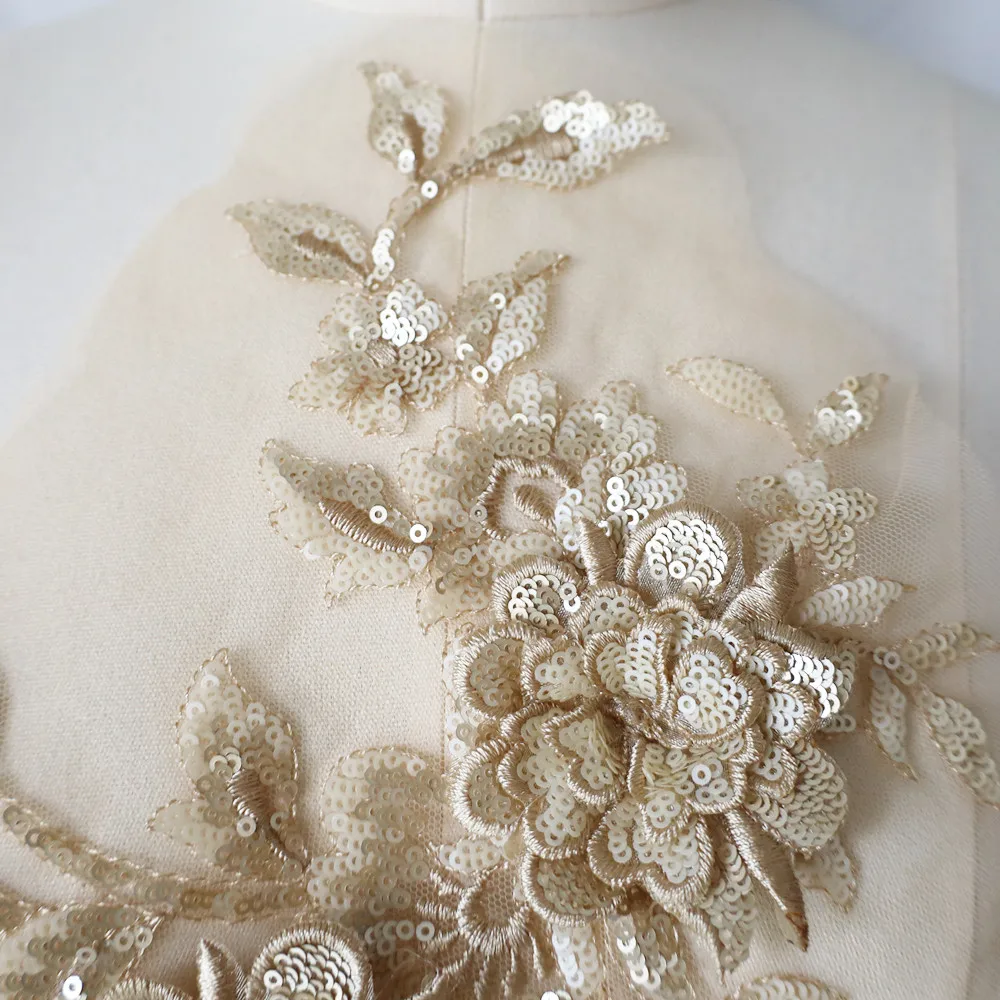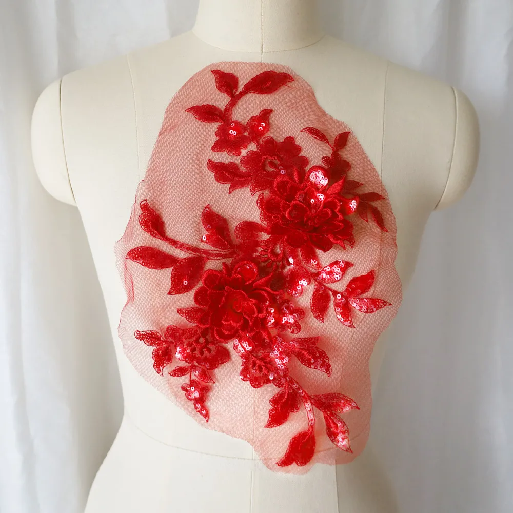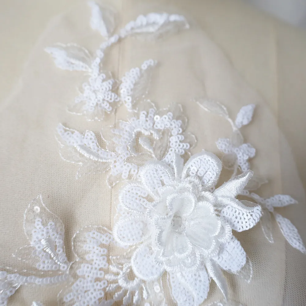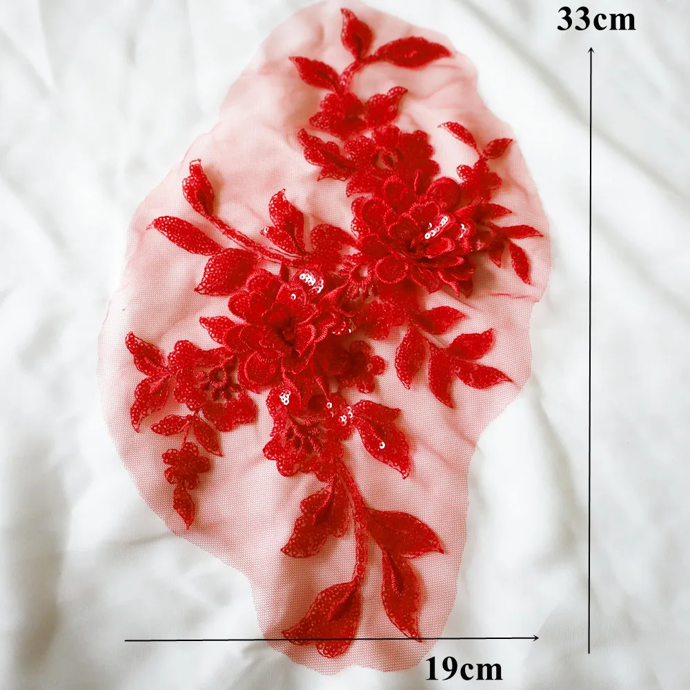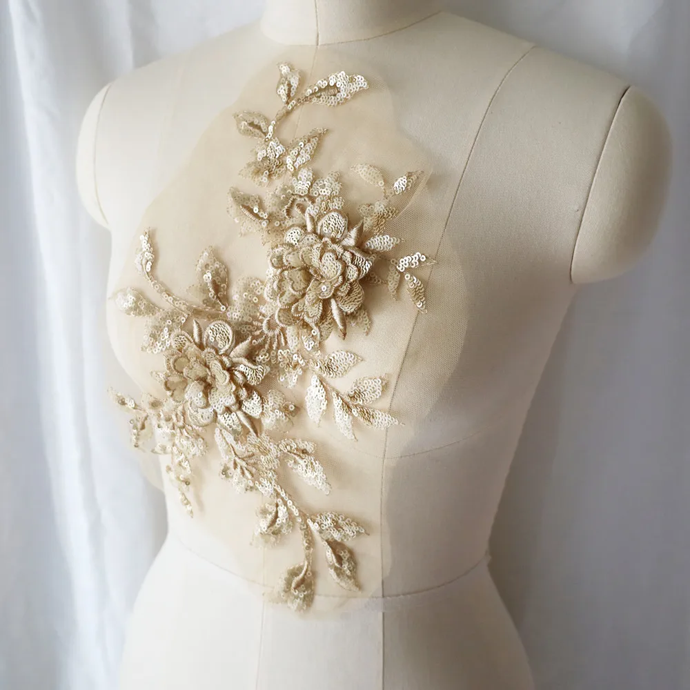 Sequin Embroidered Flower Applique Lace Fabric Trim Mesh Collar Wedding Bridal Gown Sewing Patch Party Dress Decor DIY Crafts