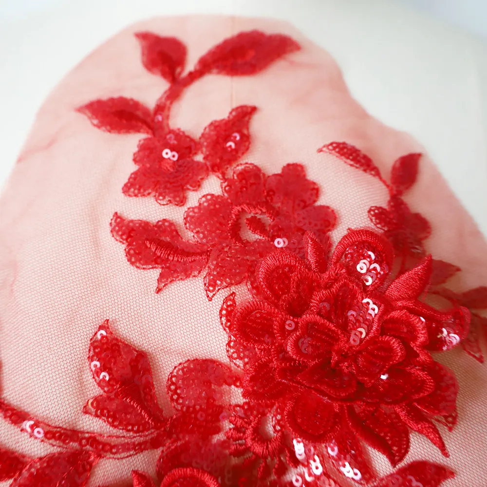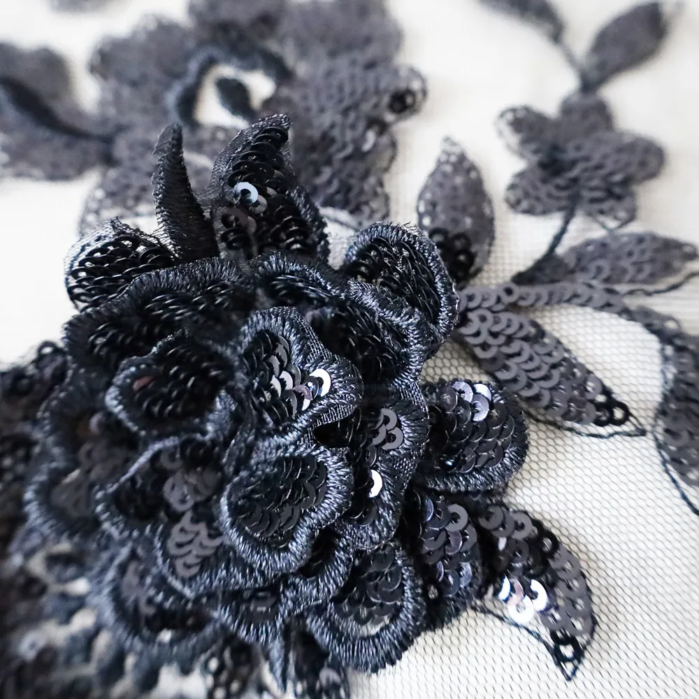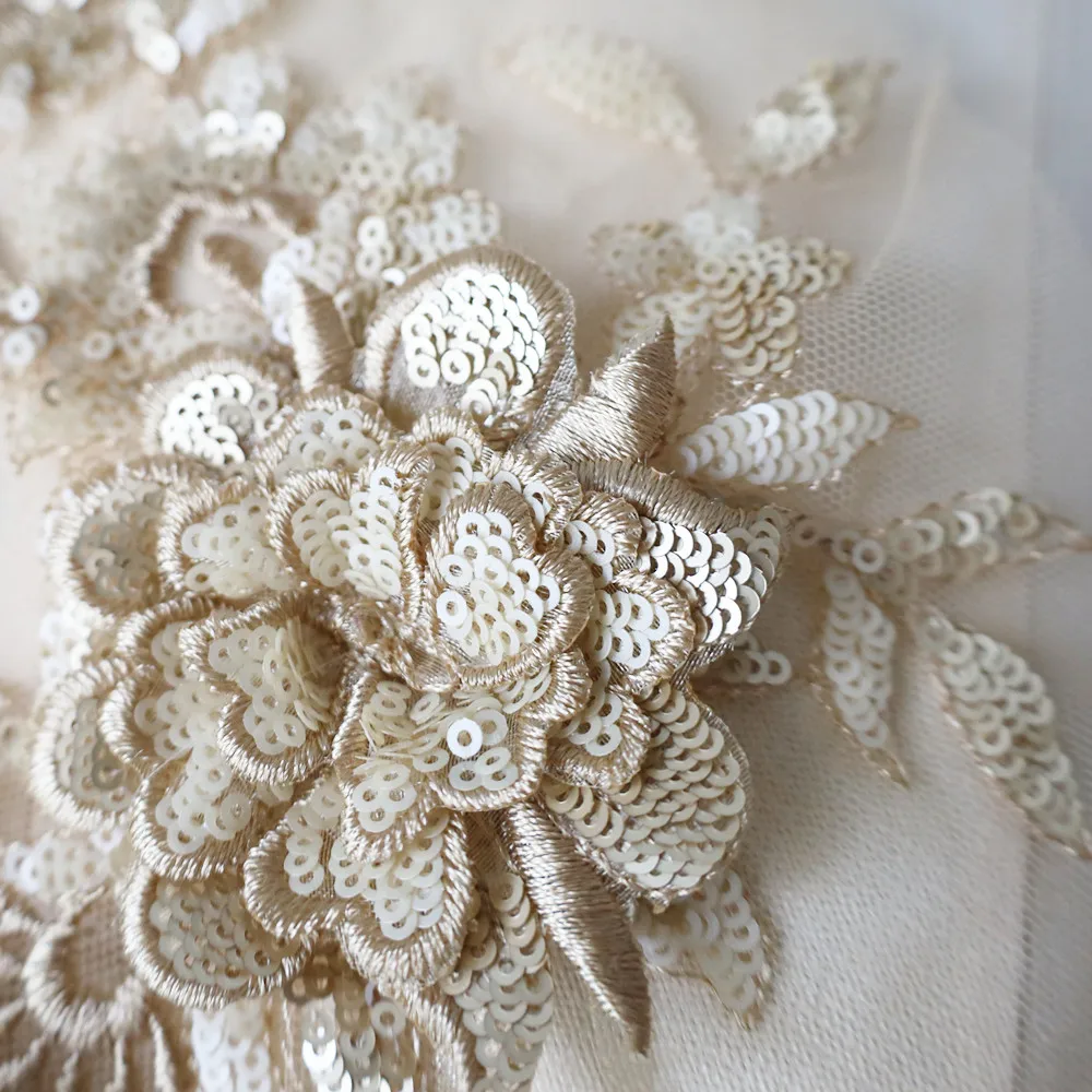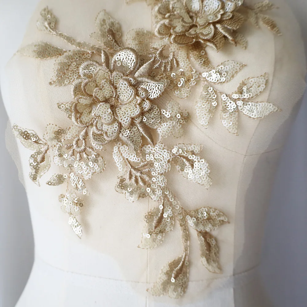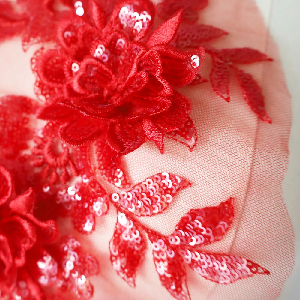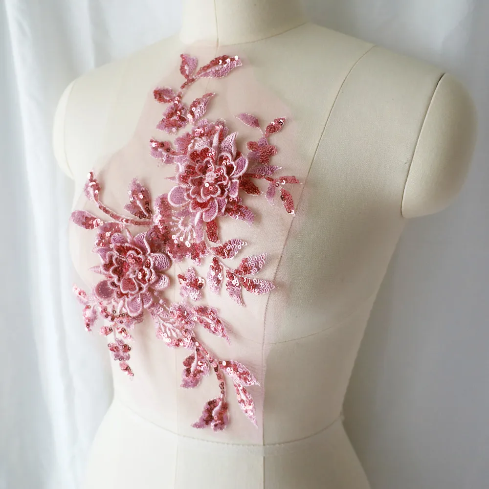 Sequin Embroidered Flower Applique Lace Fabric Trim Mesh Collar Wedding Bridal Gown Sewing Patch Party Dress Decor DIY Crafts