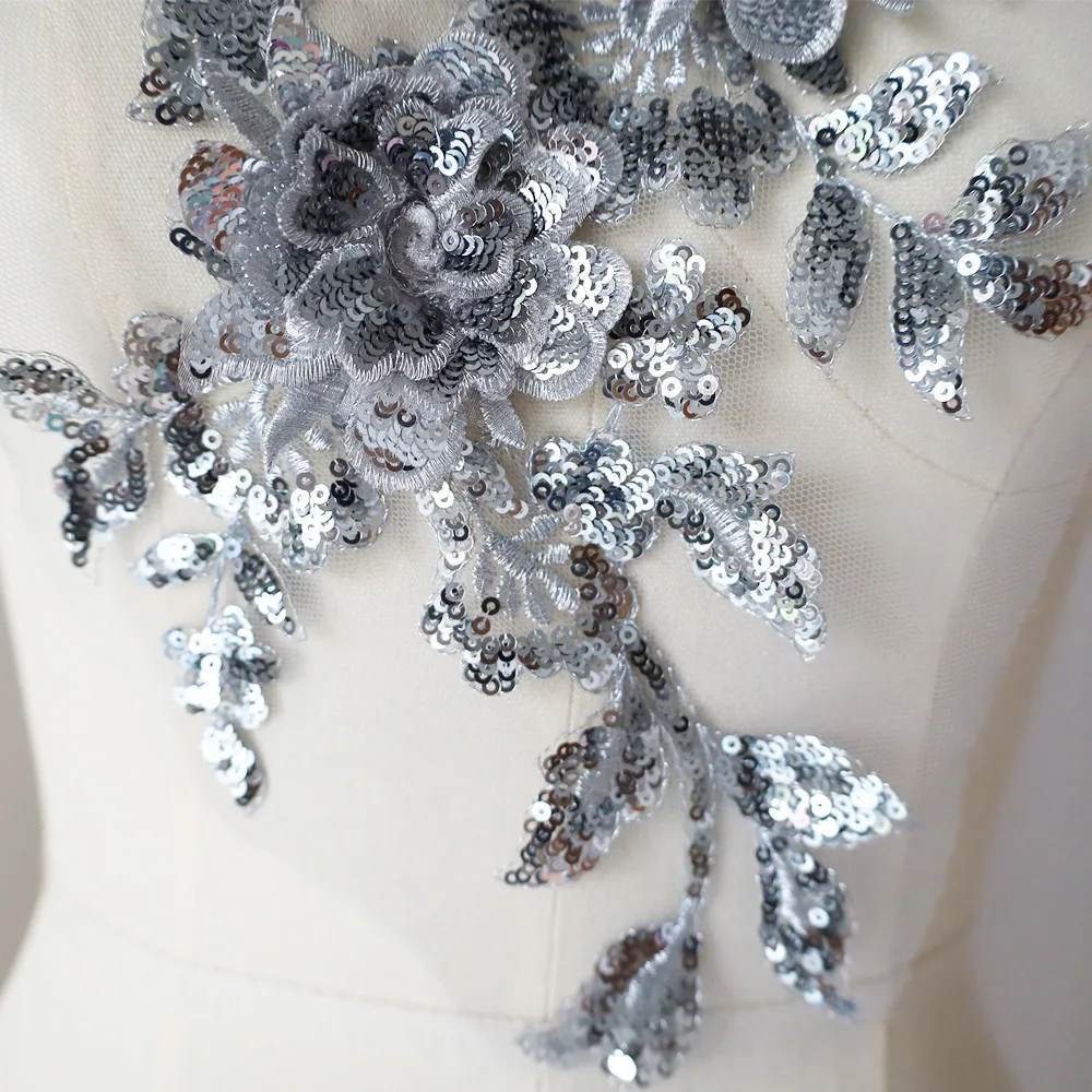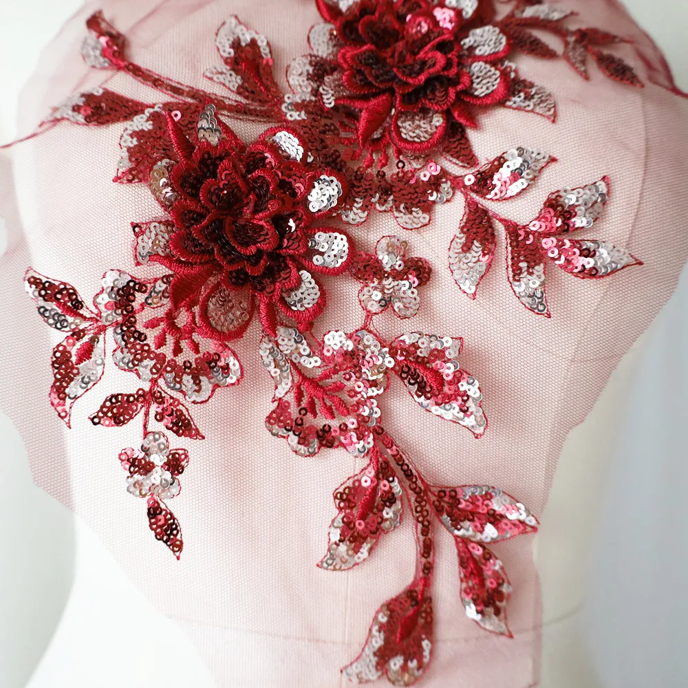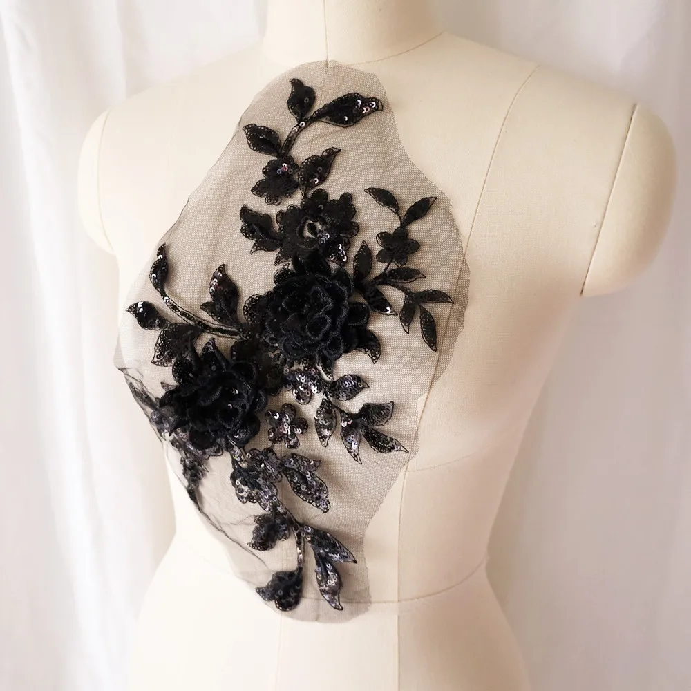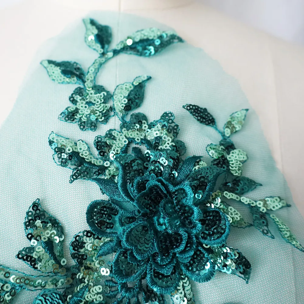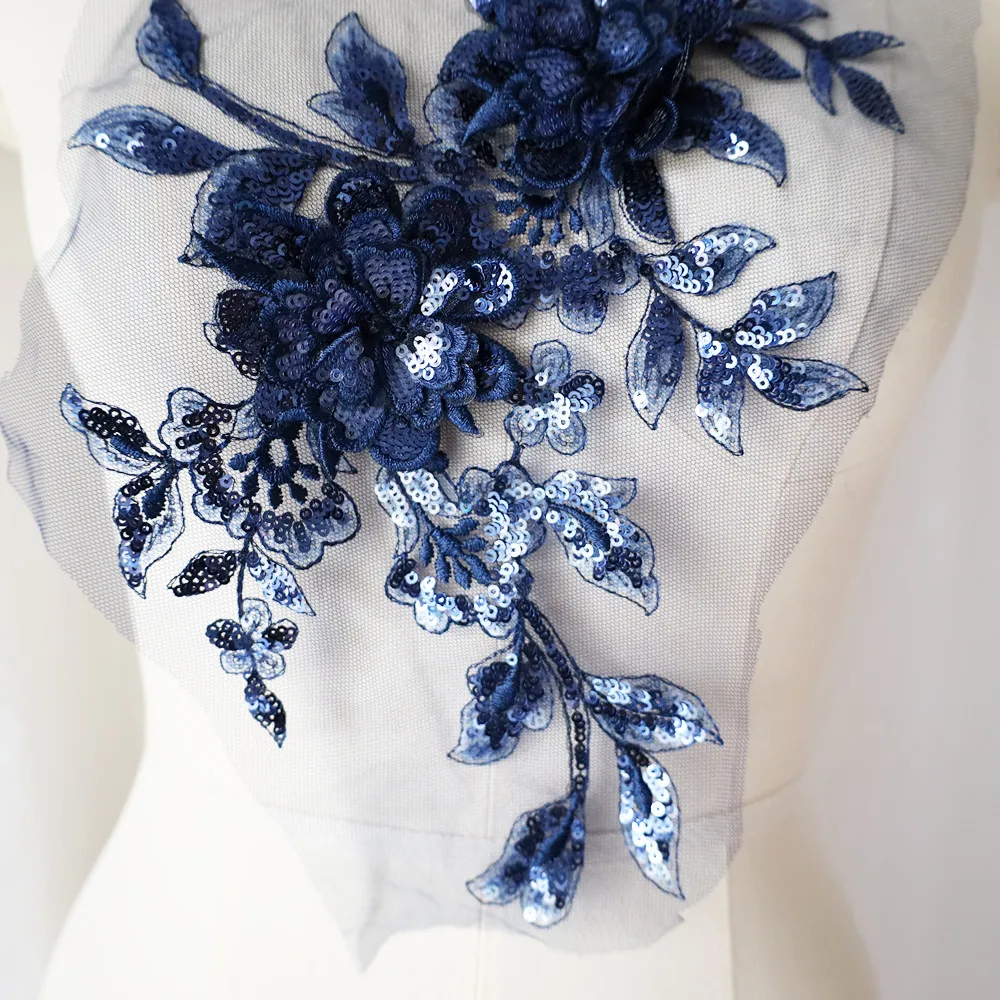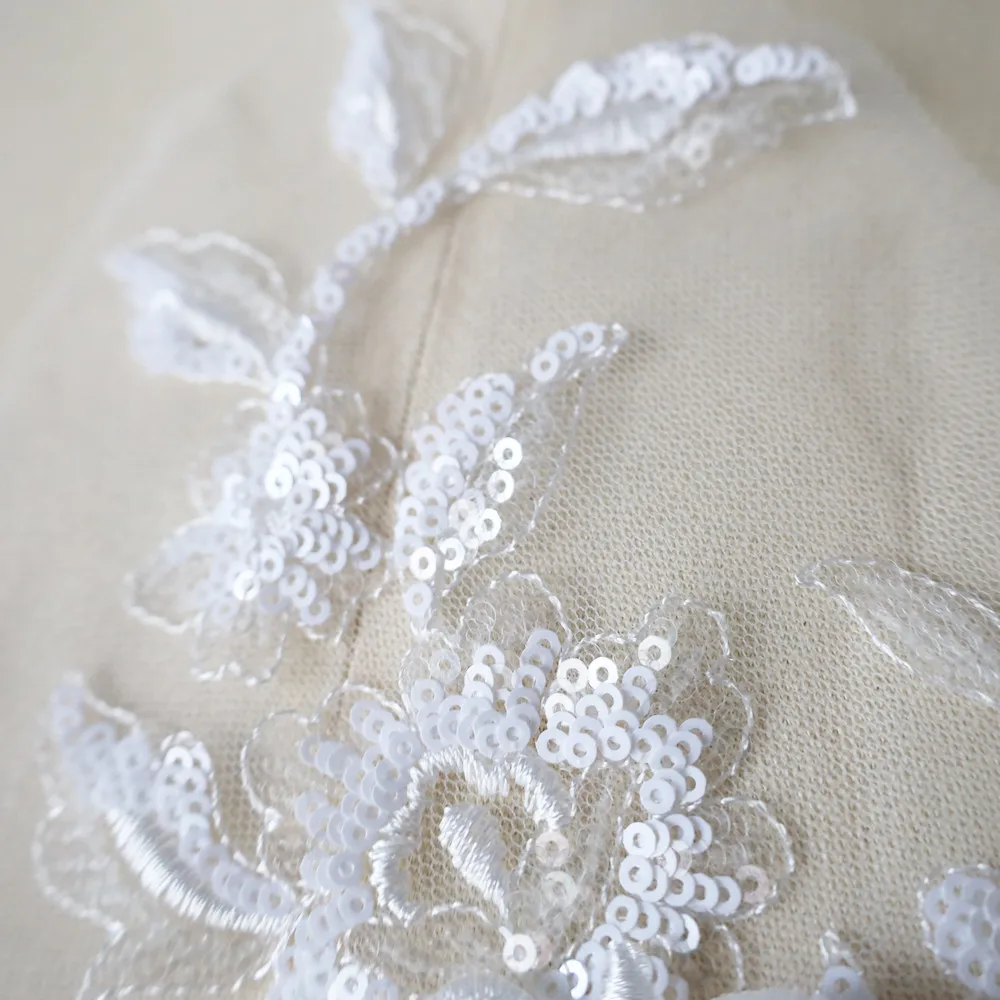 Sequin Embroidered Flower Applique Lace Fabric Trim Mesh Collar Wedding Bridal Gown Sewing Patch Party Dress Decor DIY Crafts