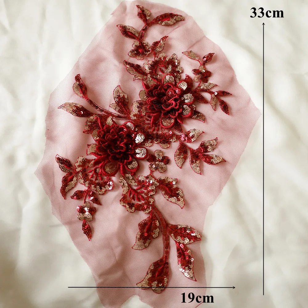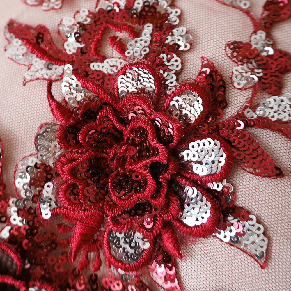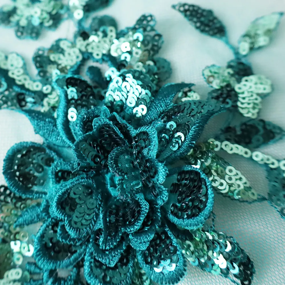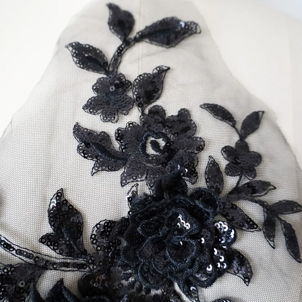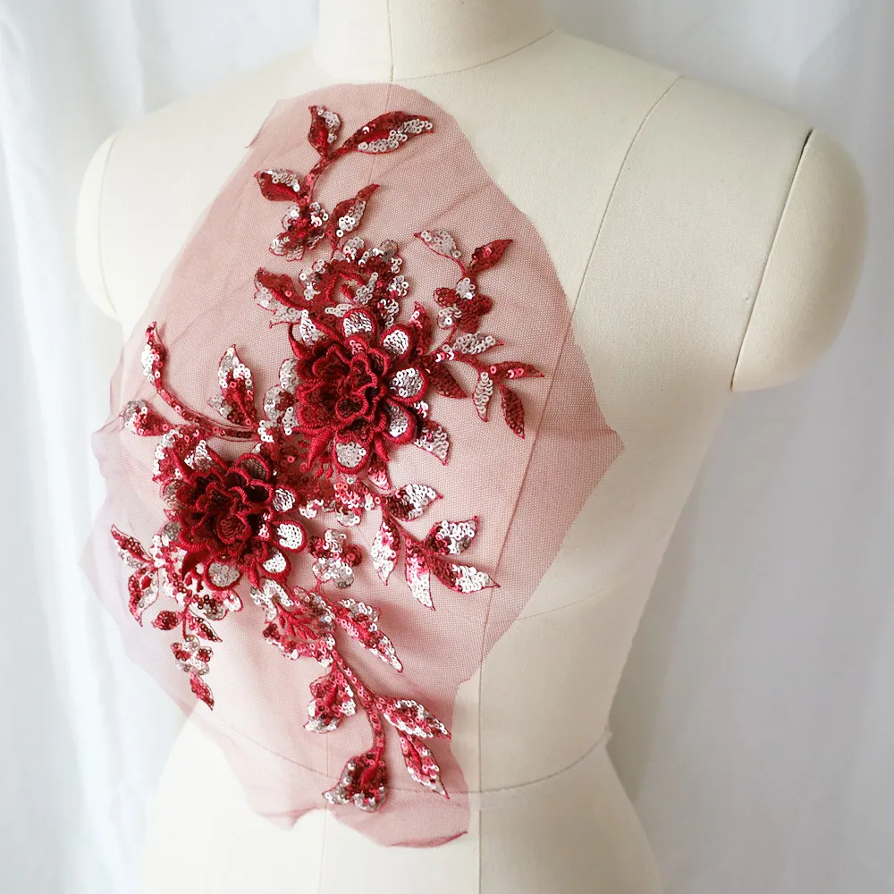 Sequin Embroidered Flower Applique Lace Fabric Trim Mesh Collar Wedding Bridal Gown Sewing Patch Party Dress Decor DIY Crafts
