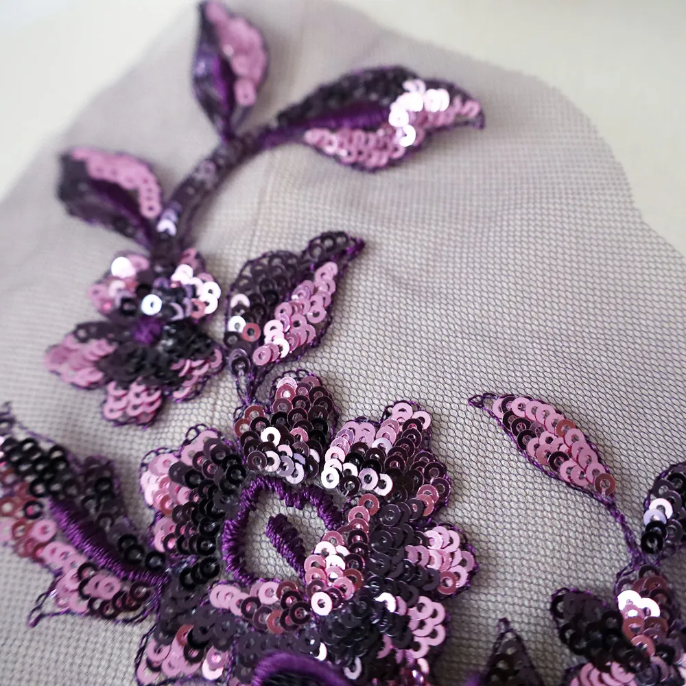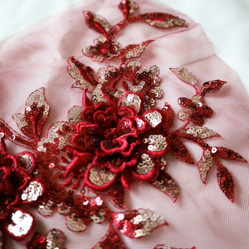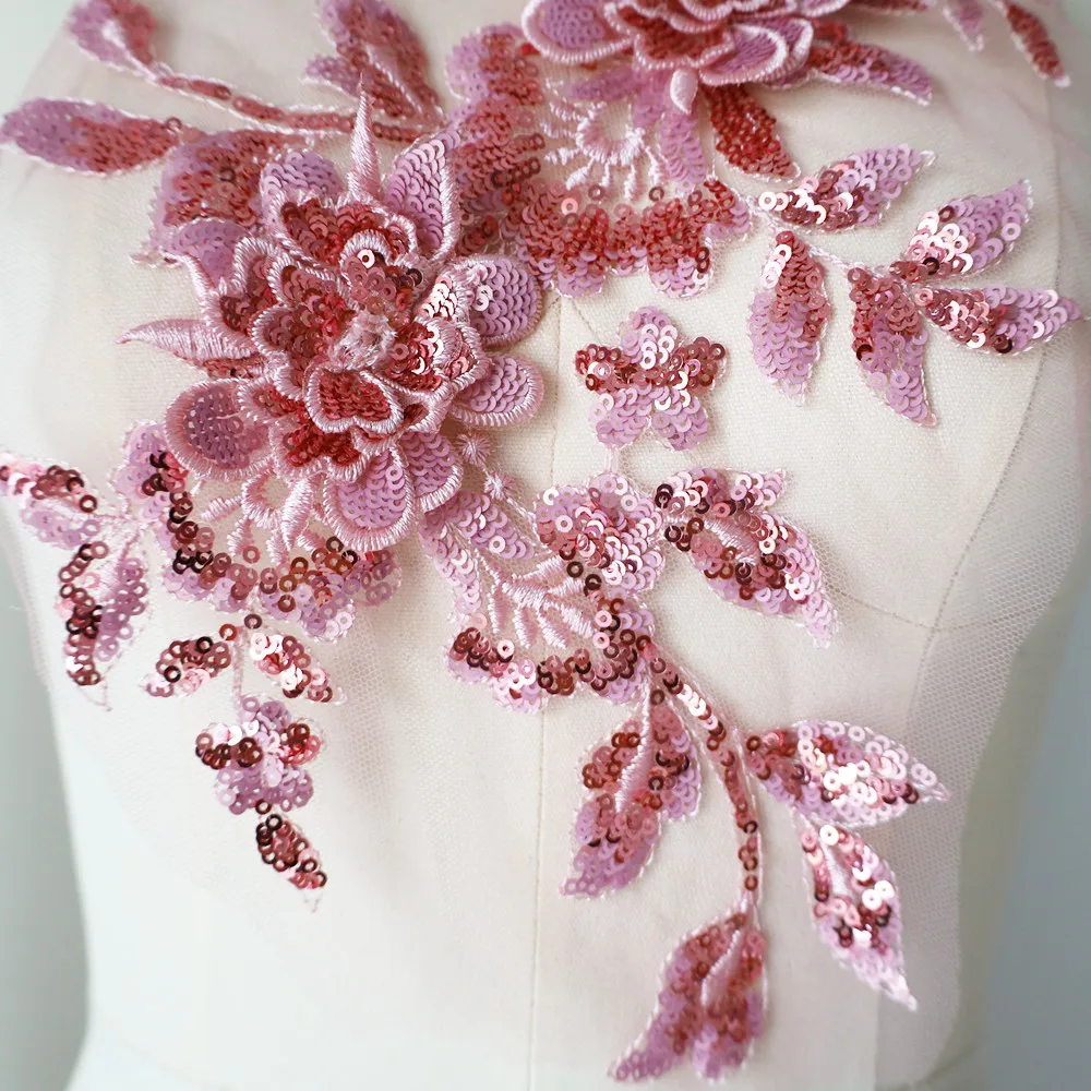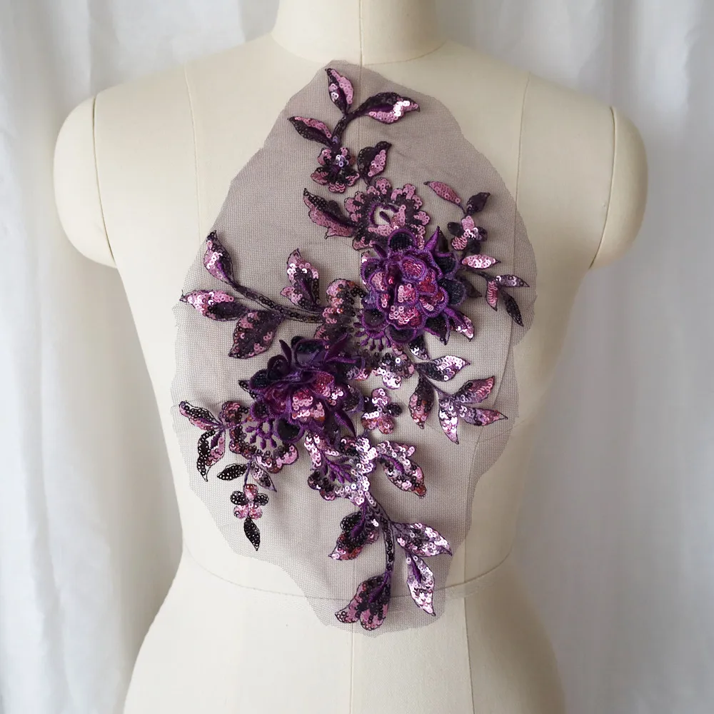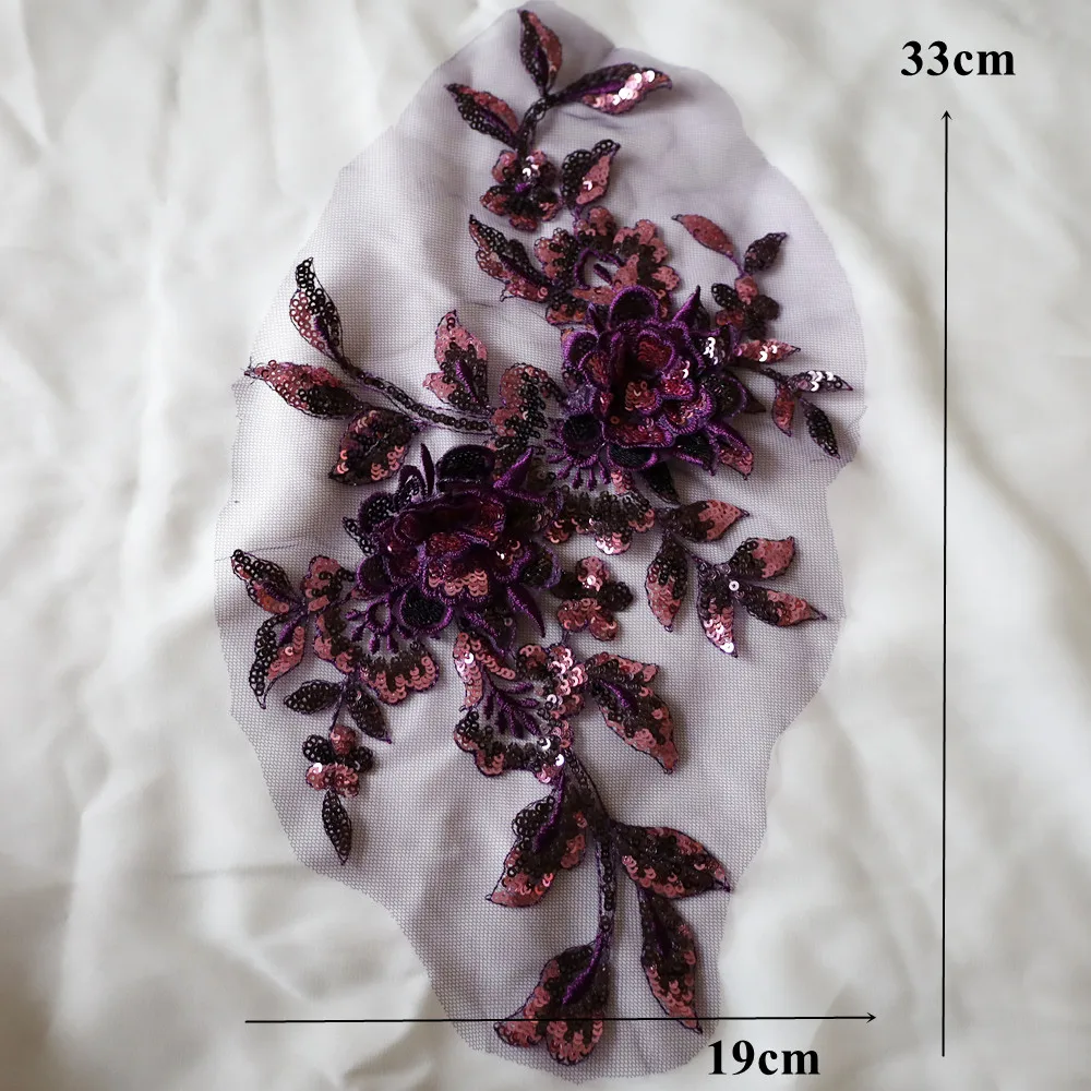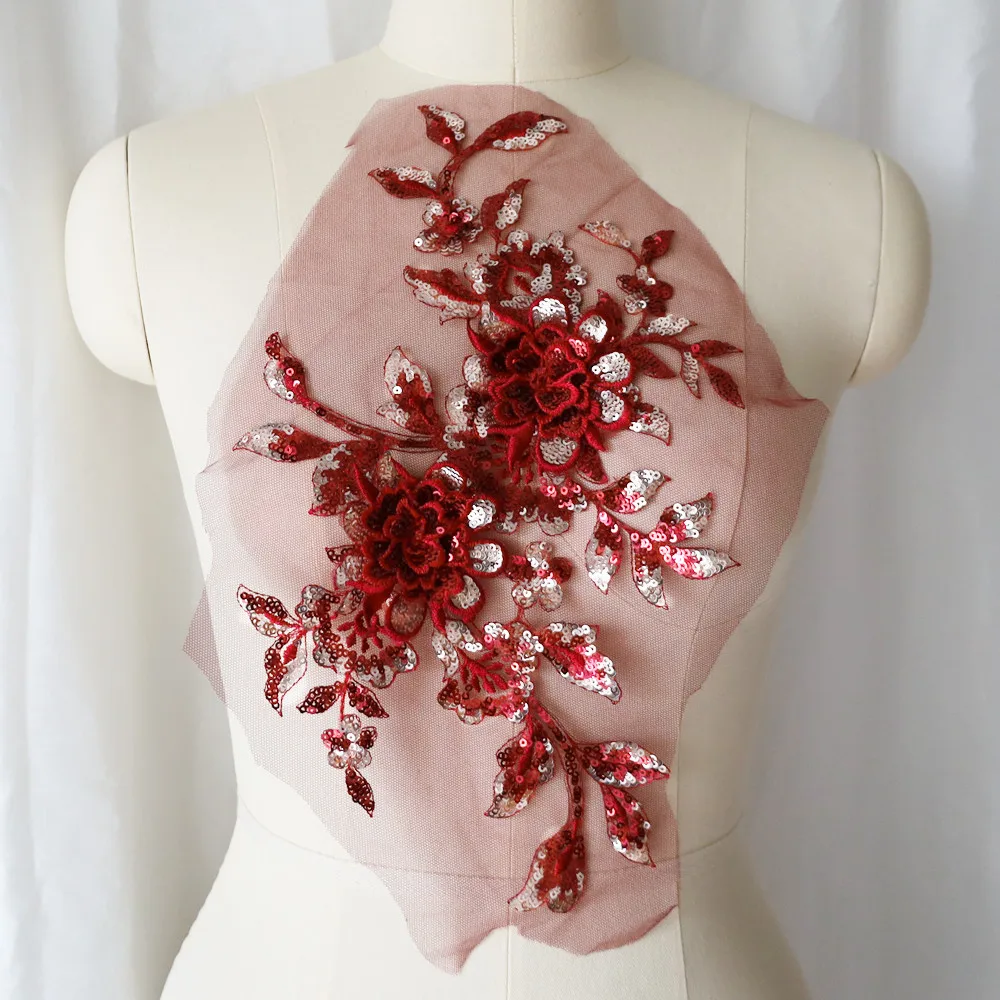 Sequin Embroidered Flower Applique Lace Fabric Trim Mesh Collar Wedding Bridal Gown Sewing Patch Party Dress Decor DIY Crafts