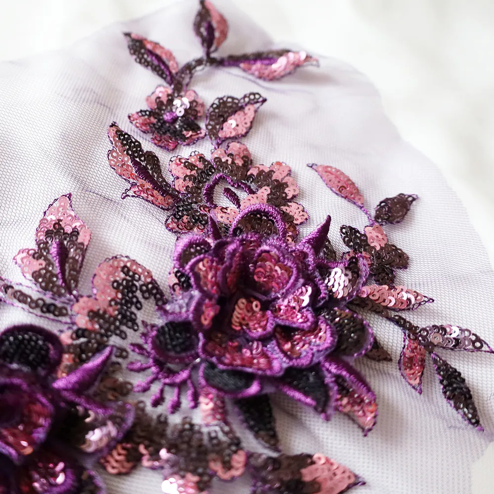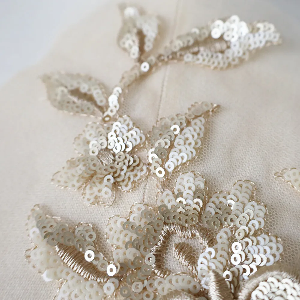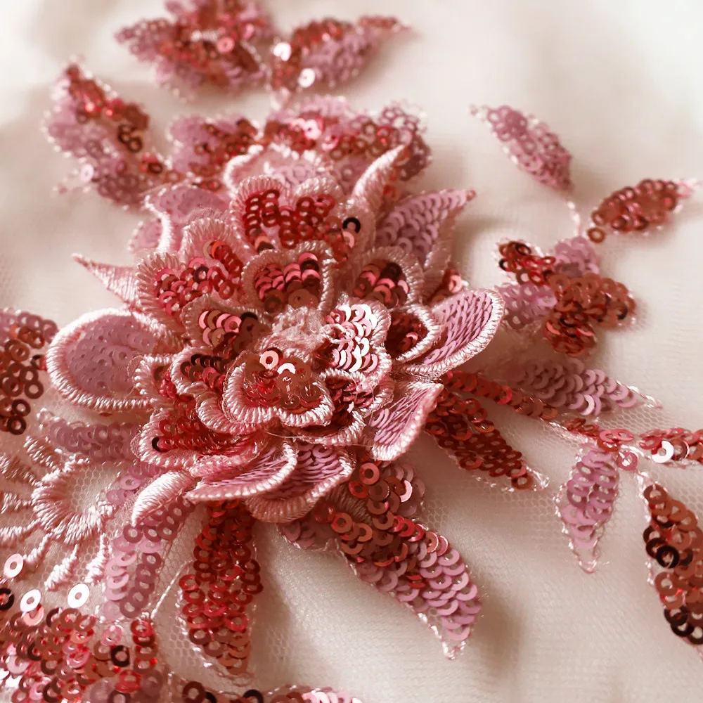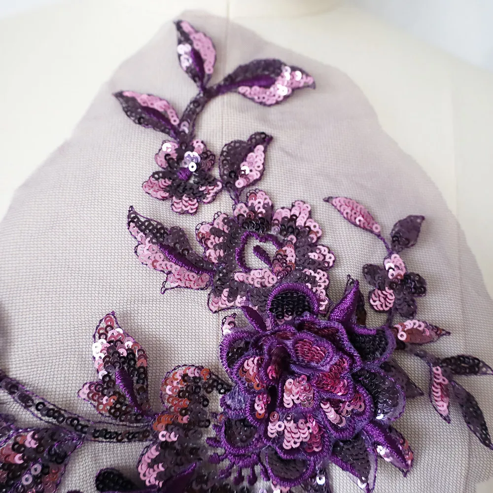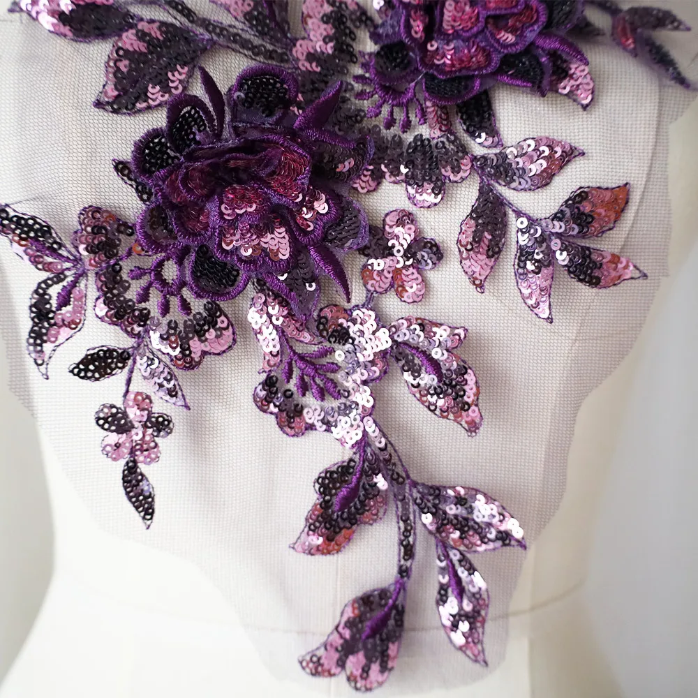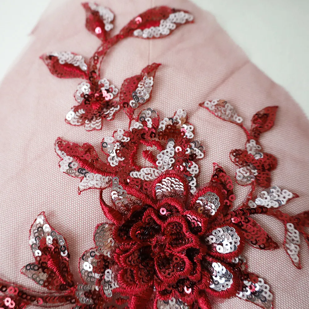 Sequin Embroidered Flower Applique Lace Fabric Trim Mesh Collar Wedding Bridal Gown Sewing Patch Party Dress Decor DIY Crafts