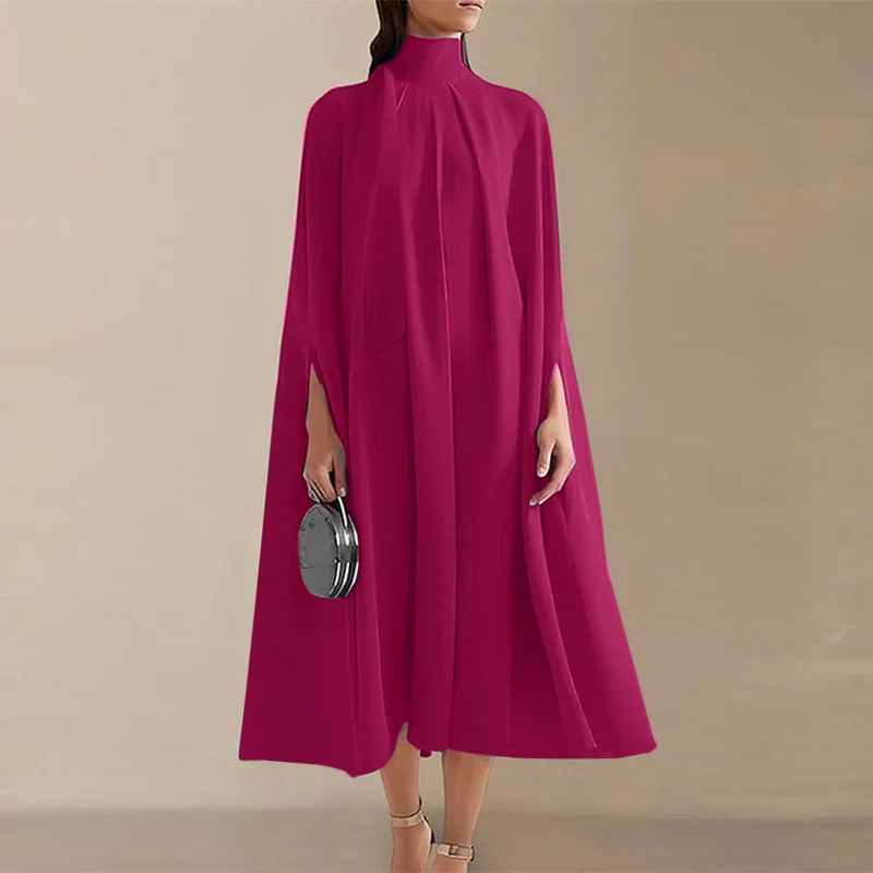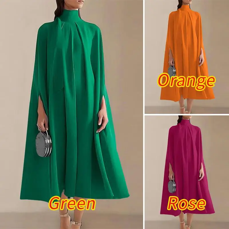 VONDA Summer Party Dress 2024 Elegant Evening Midi Dress Fashion Women Bat Sleeve Turtleneck Sundress Casual Vetidos Loose Robe