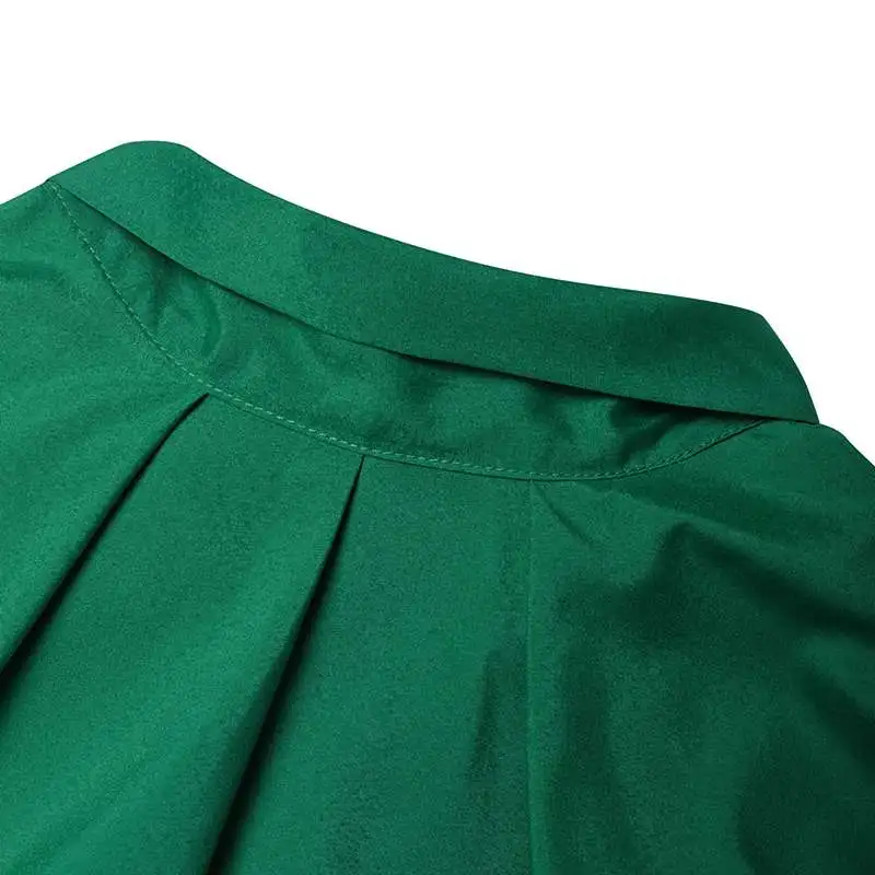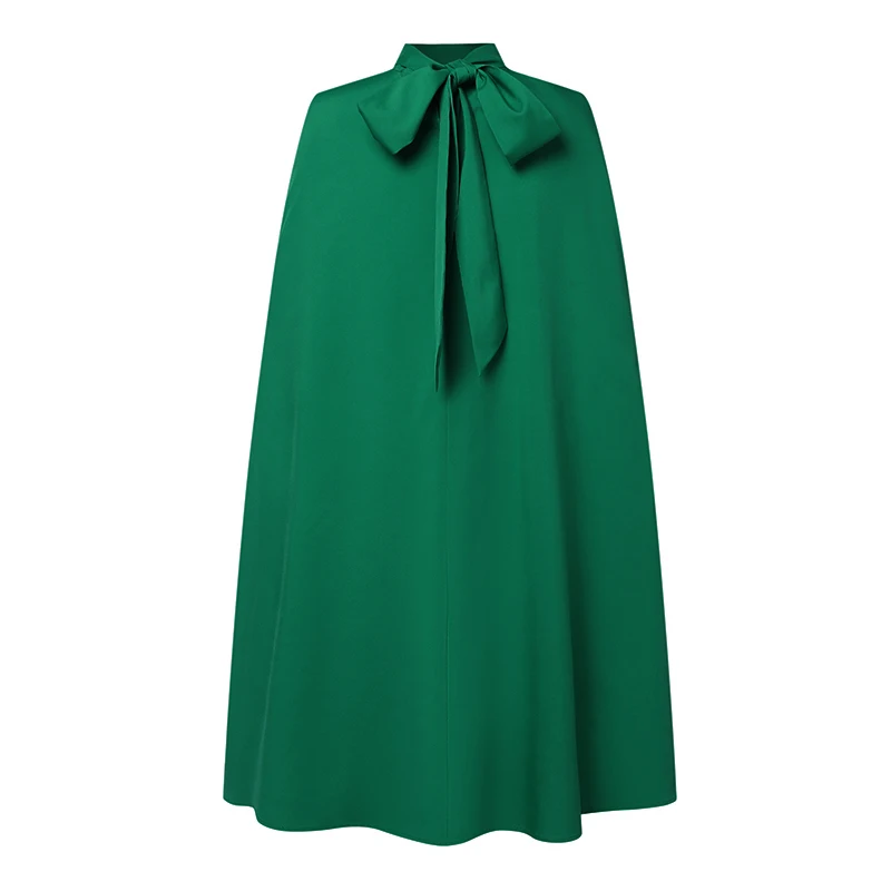 Features:Stand collar mid-length dress