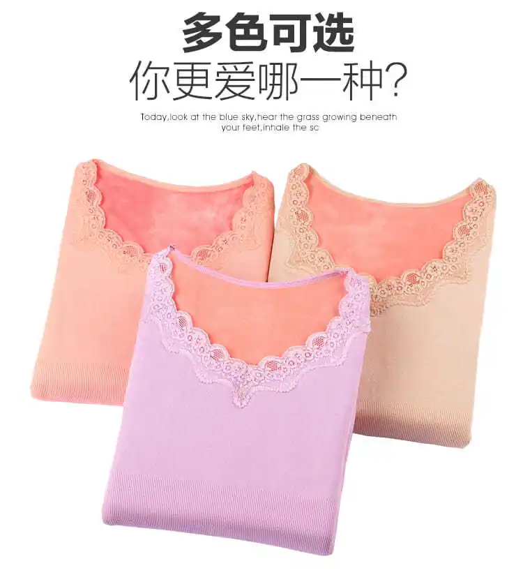 Ropa interior térmica de invierno para mujer, moda ajustada para el cuidado del cuerpo, cuello de encaje Sexy, diseño de encaje polar, ropa de invierno para mujer, Jersey cálido