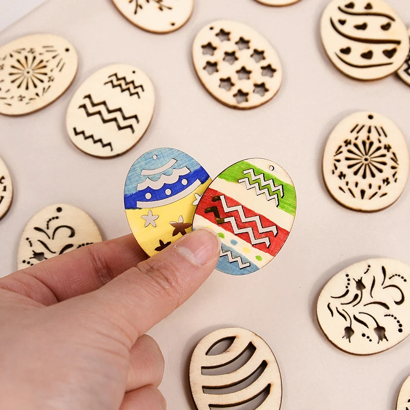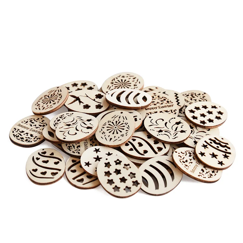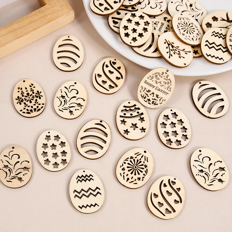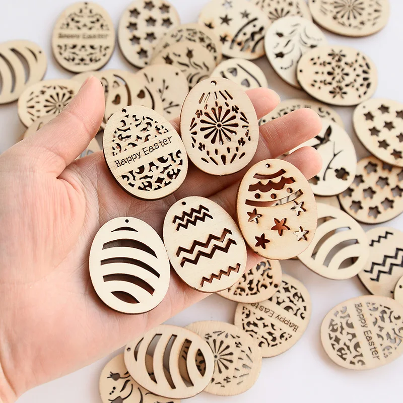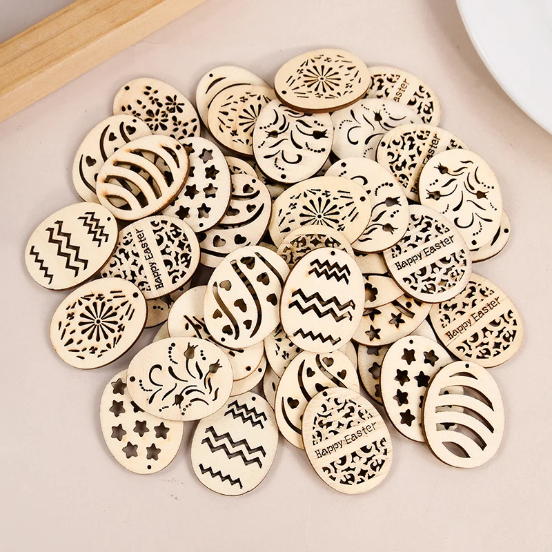 25/50Pcs Happy Easter Wooden Eggs DIY Craft Hanging Ornaments Hollowed Wood Chips Easter Party Decorations For Home Kids Gift