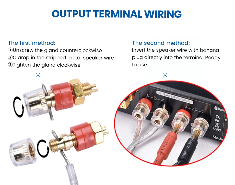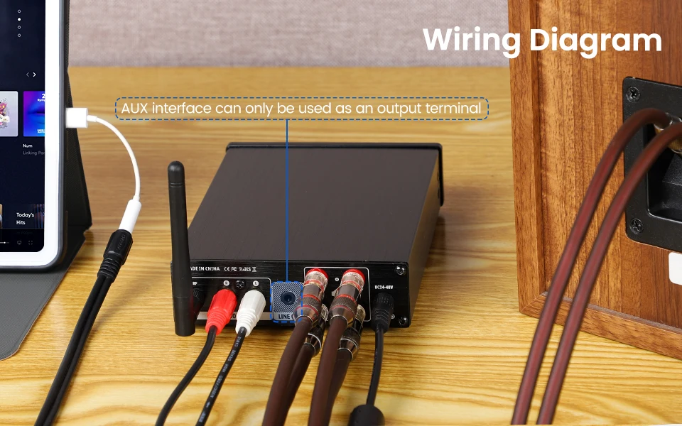 3. Add AUX interface that can be connected to active equipment output, so as to add an active subwoofer or connect to the next active power amplifier (it can bring you the continuity of 2.1/4.1 channels)