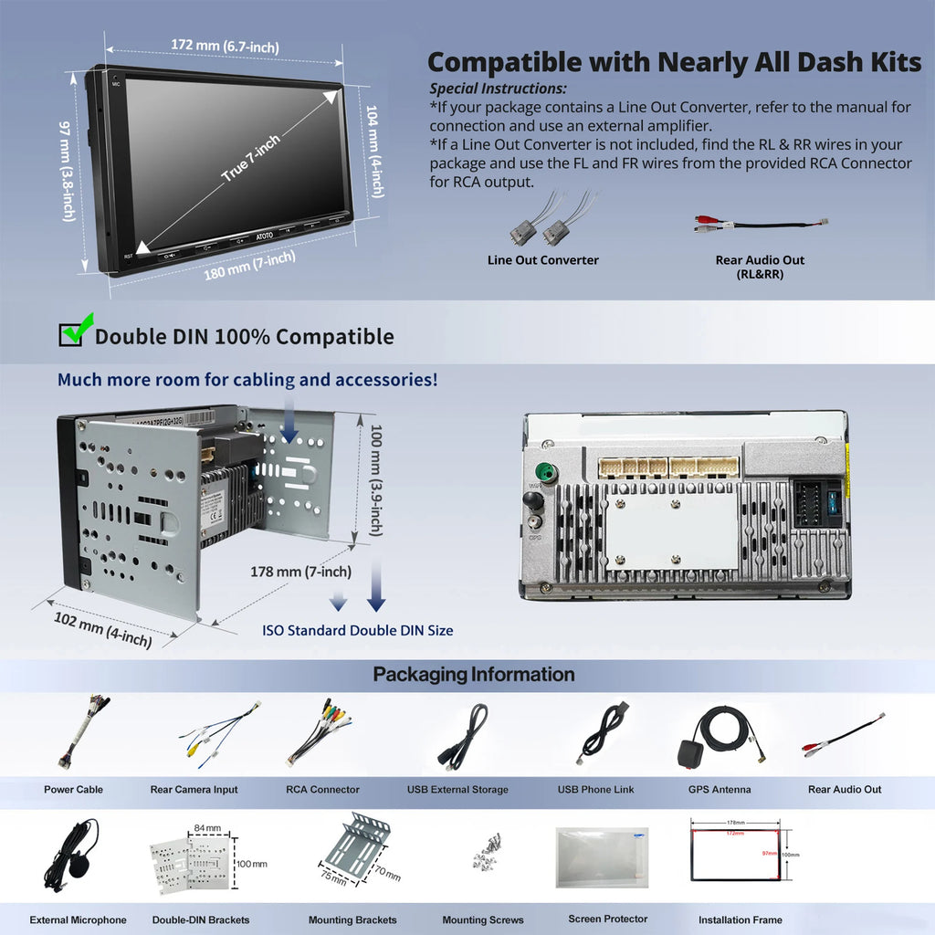 ATOTO A6PF 7 Double 2 Din Car Radio Android Auto Wireless Carplay Screen Display Multimedia Player Car Stereo Intelligent System