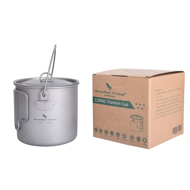Boundless Voyage Titanium Mug Camping Cup Supplies Outdoor Pot with Lid Lightweight Cookware Travel Tea Coffee Tableware