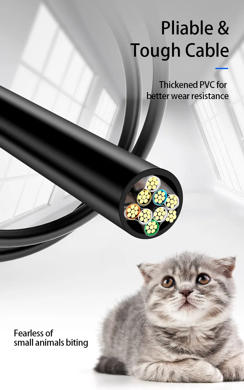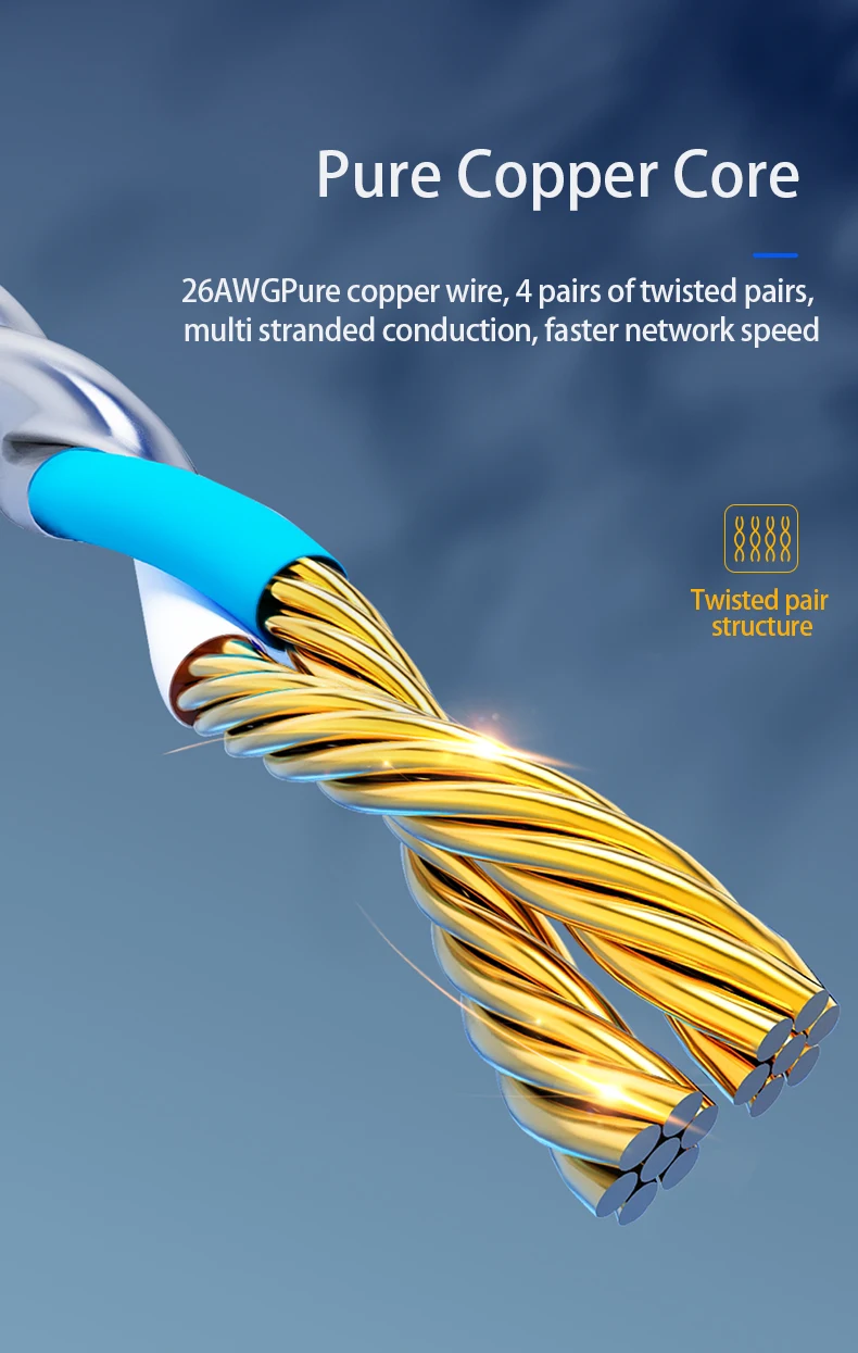 Cable wrapped with quality cotton braided cord, which makes the LAN cable stronger and more durable. The test proves that this internet cable can be bent at least 10000 times without broken, very suitable for long-term use.