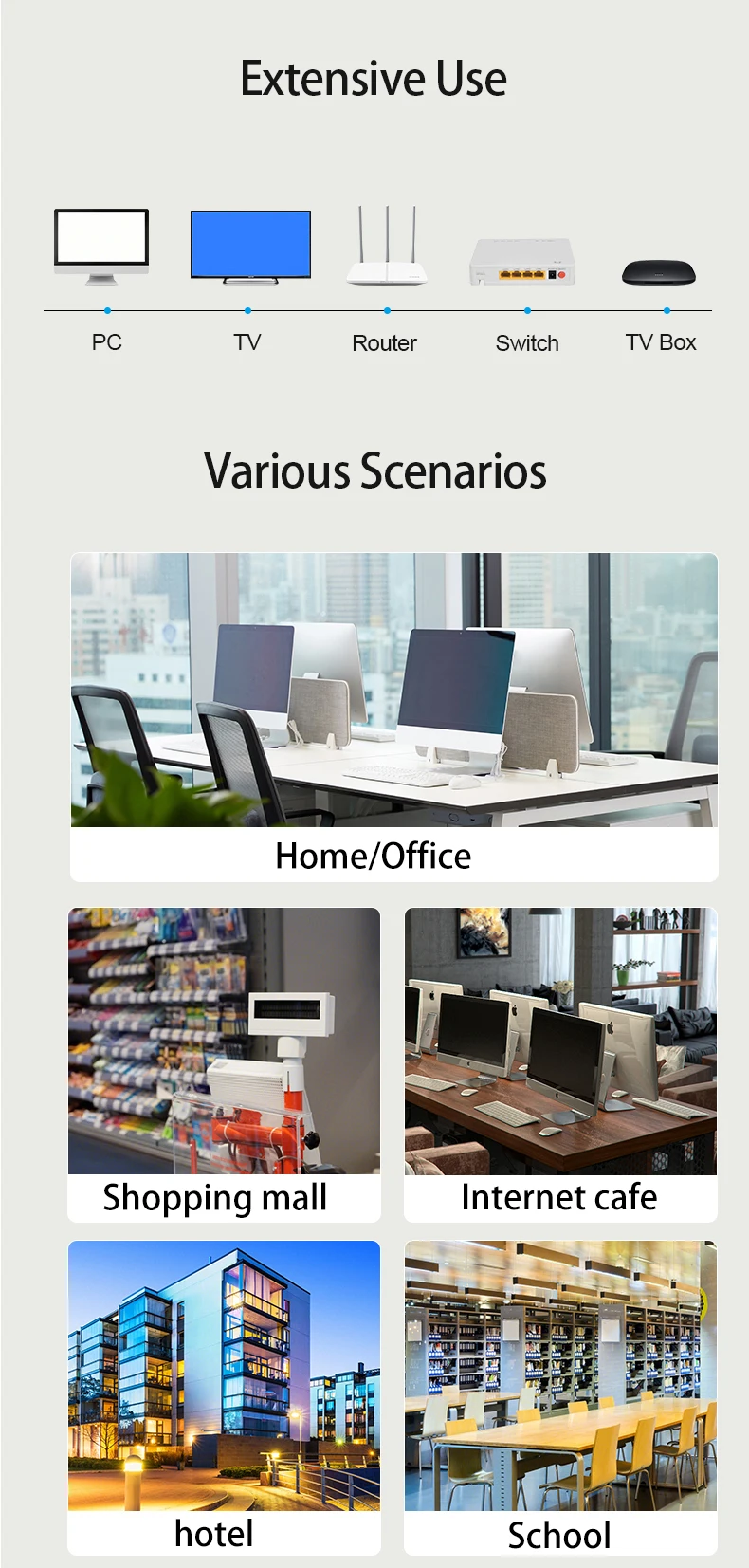 Round Cable:Used for daily office,internet cafe,home etc.